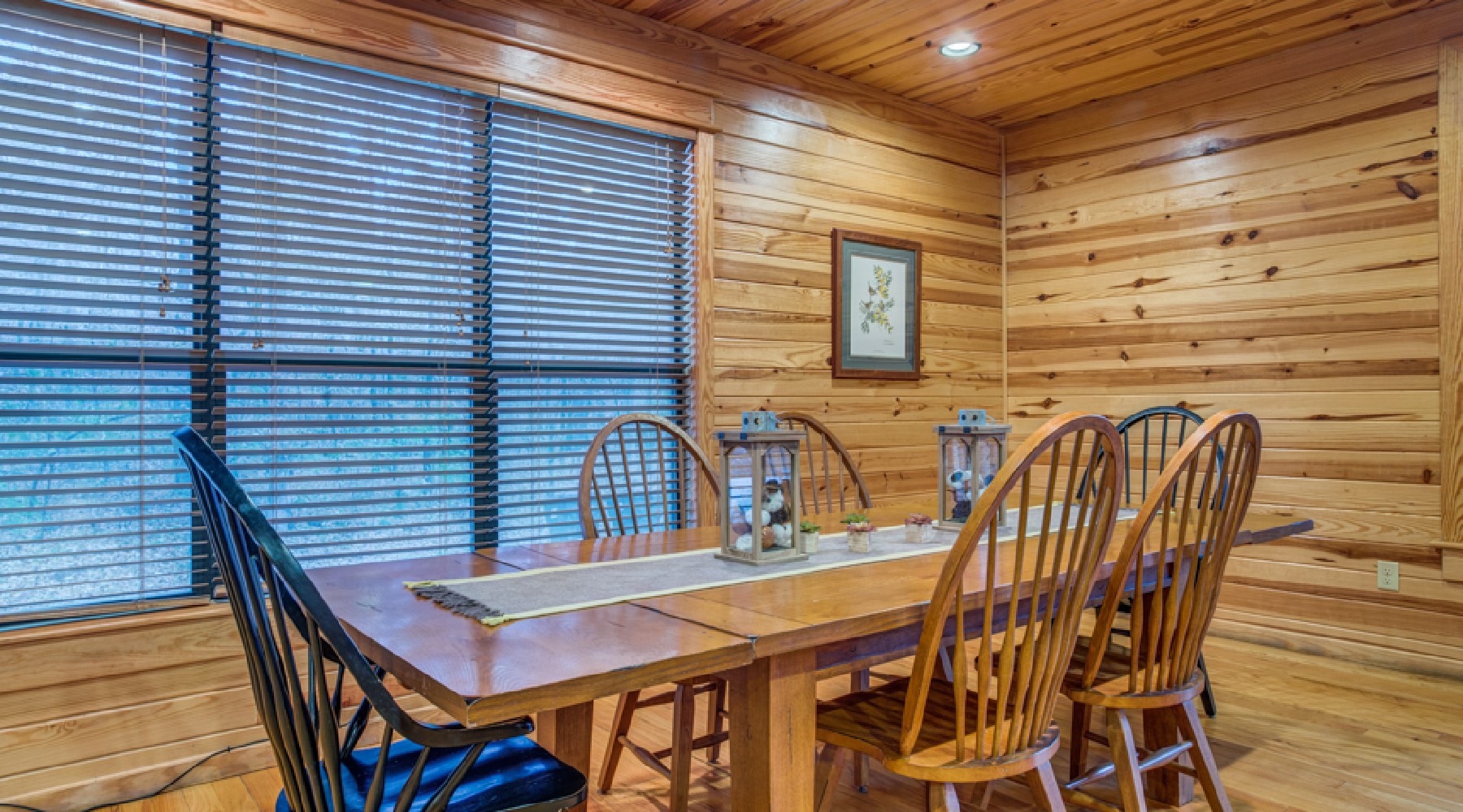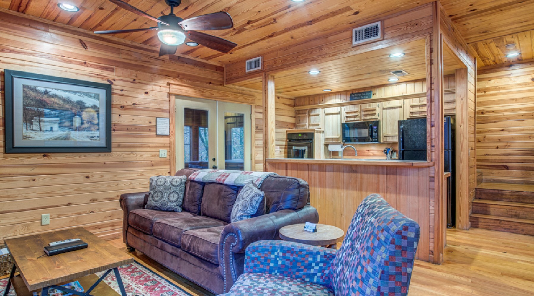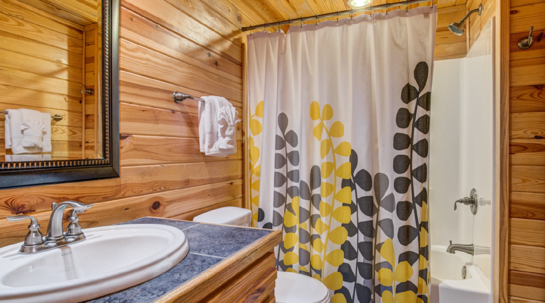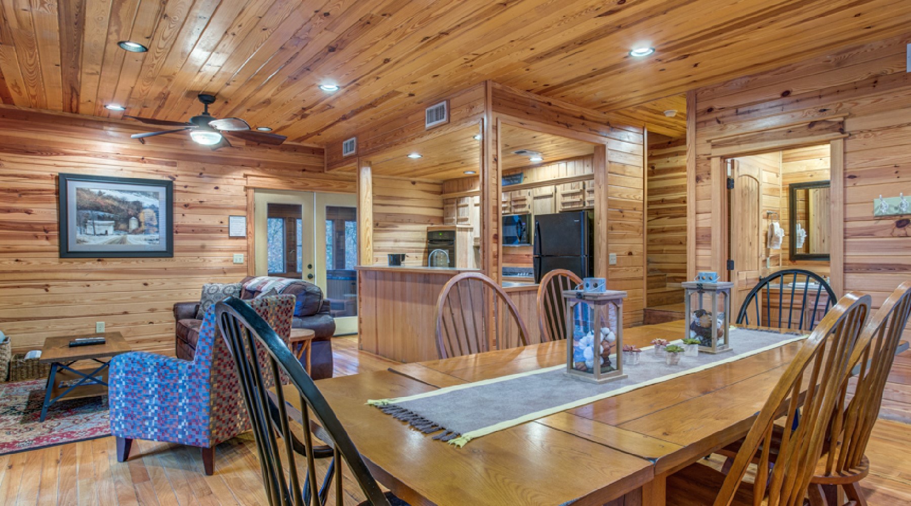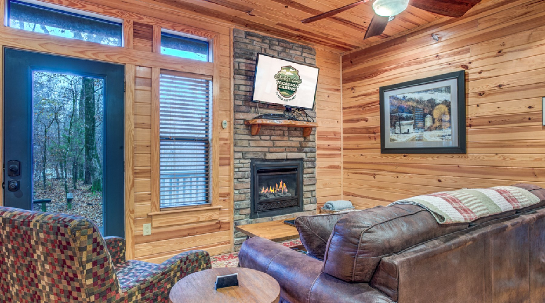 Always Shady also offers extra space outside – it’s built on a double lot next to Fork Creek and is surrounded by tall Oak trees and Dogwoods! You’ll have plenty of green space and privacy separating you from other cabins.