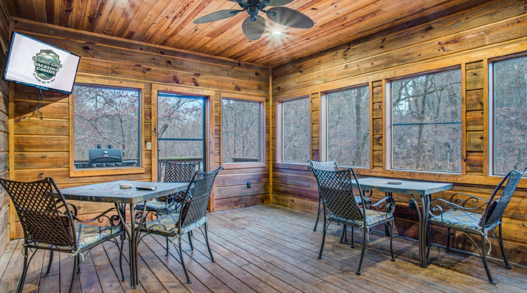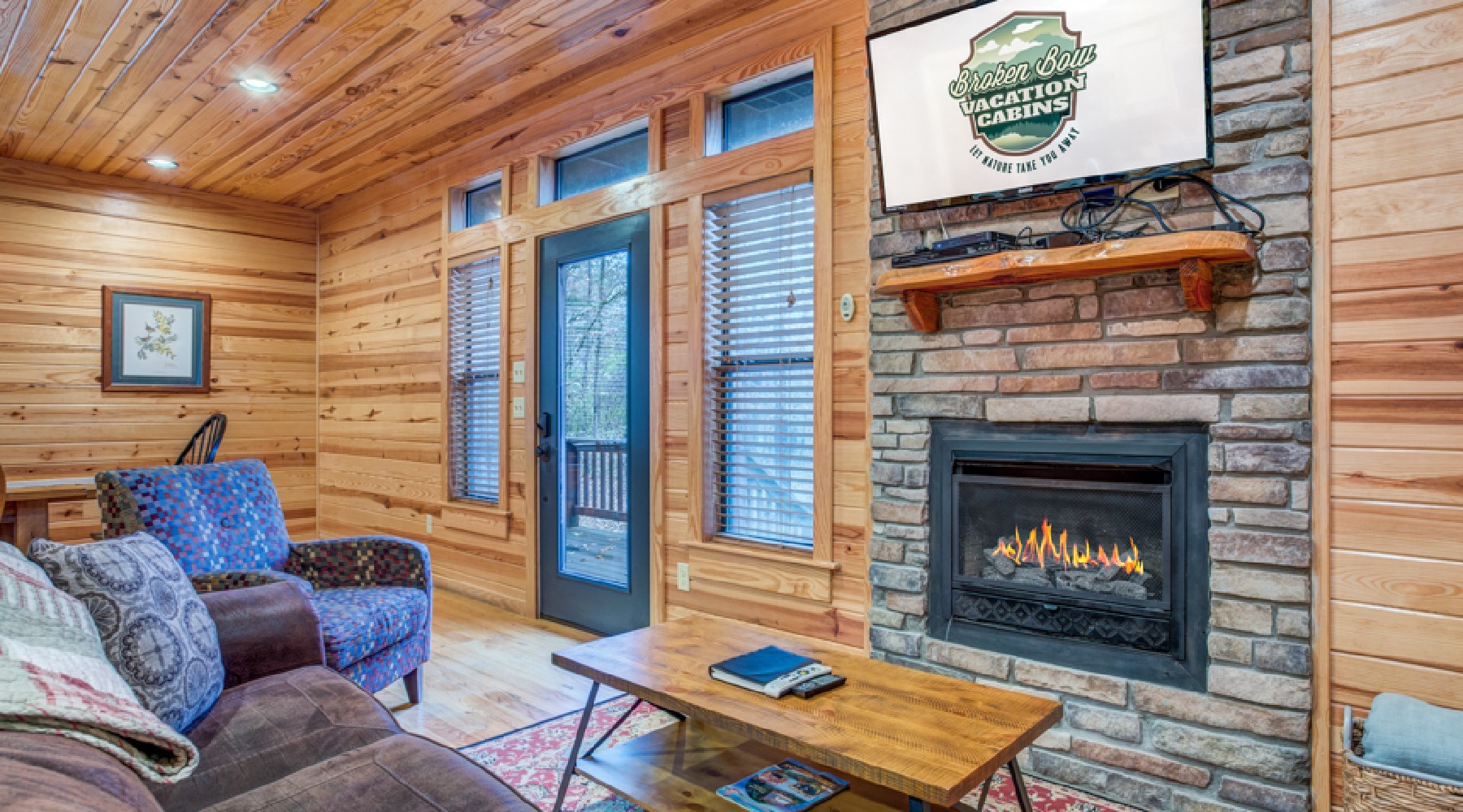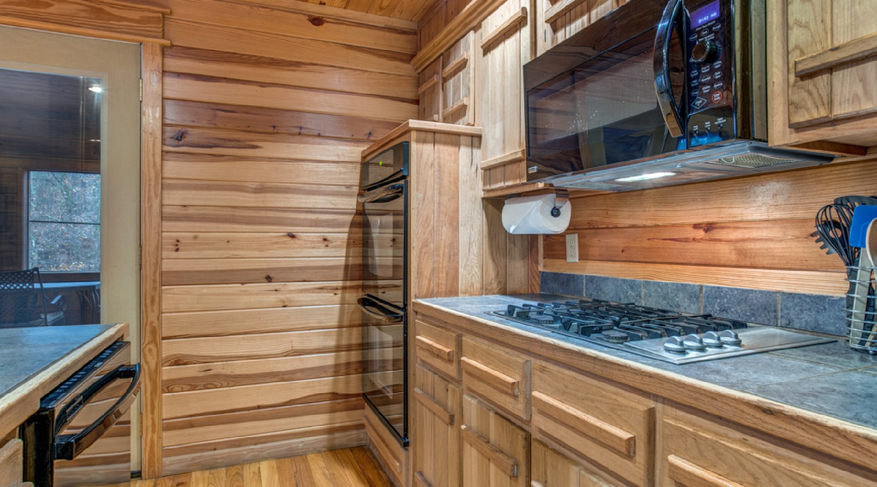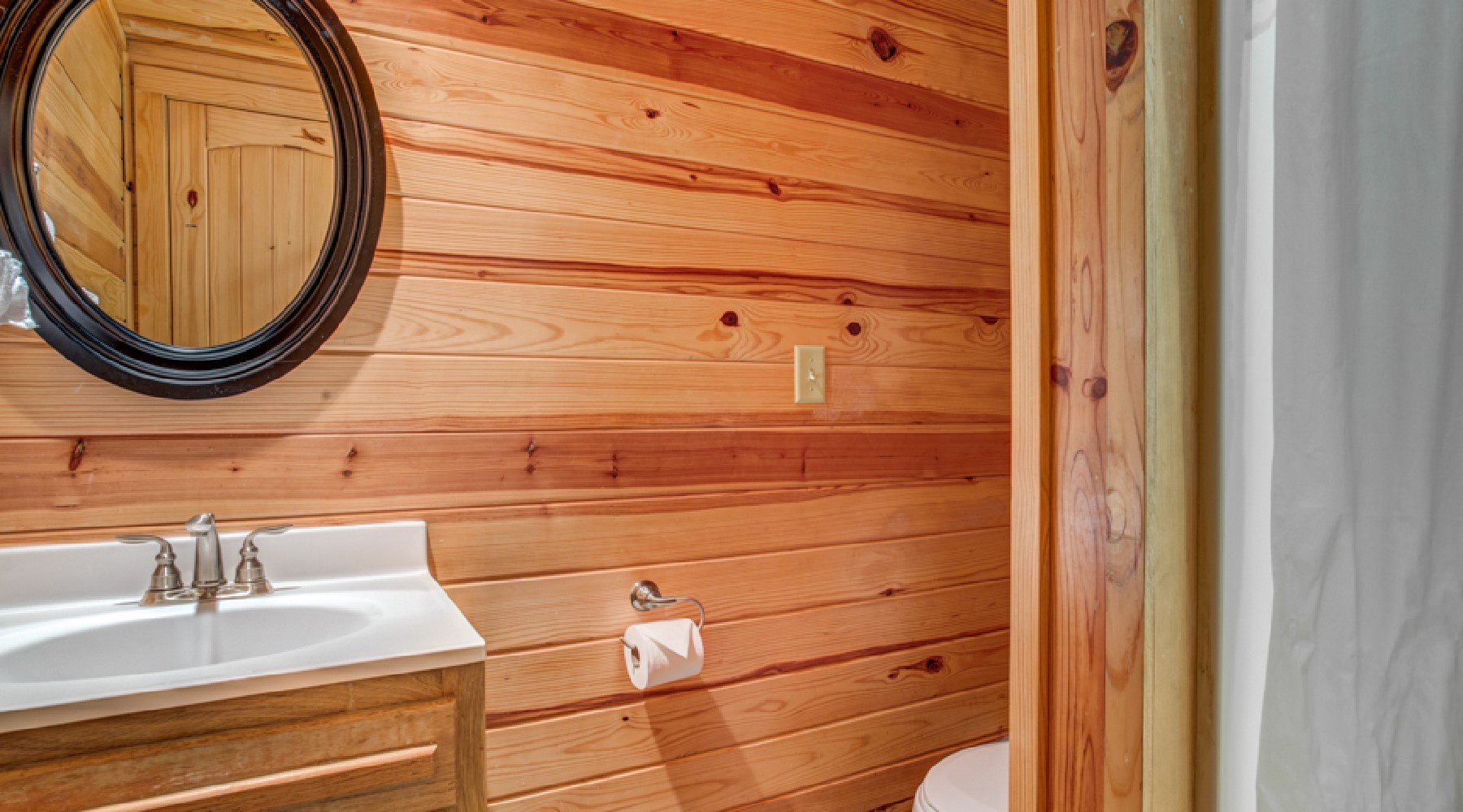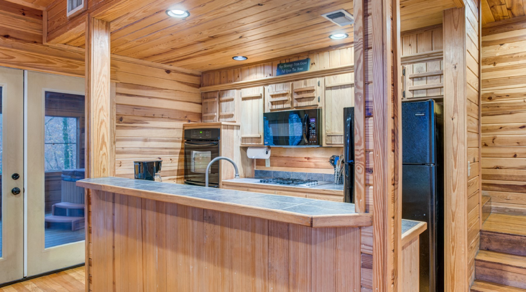 Always Shady also offers extra space outside – it’s built on a double lot next to Fork Creek and is surrounded by tall Oak trees and Dogwoods! You’ll have plenty of green space and privacy separating you from other cabins.