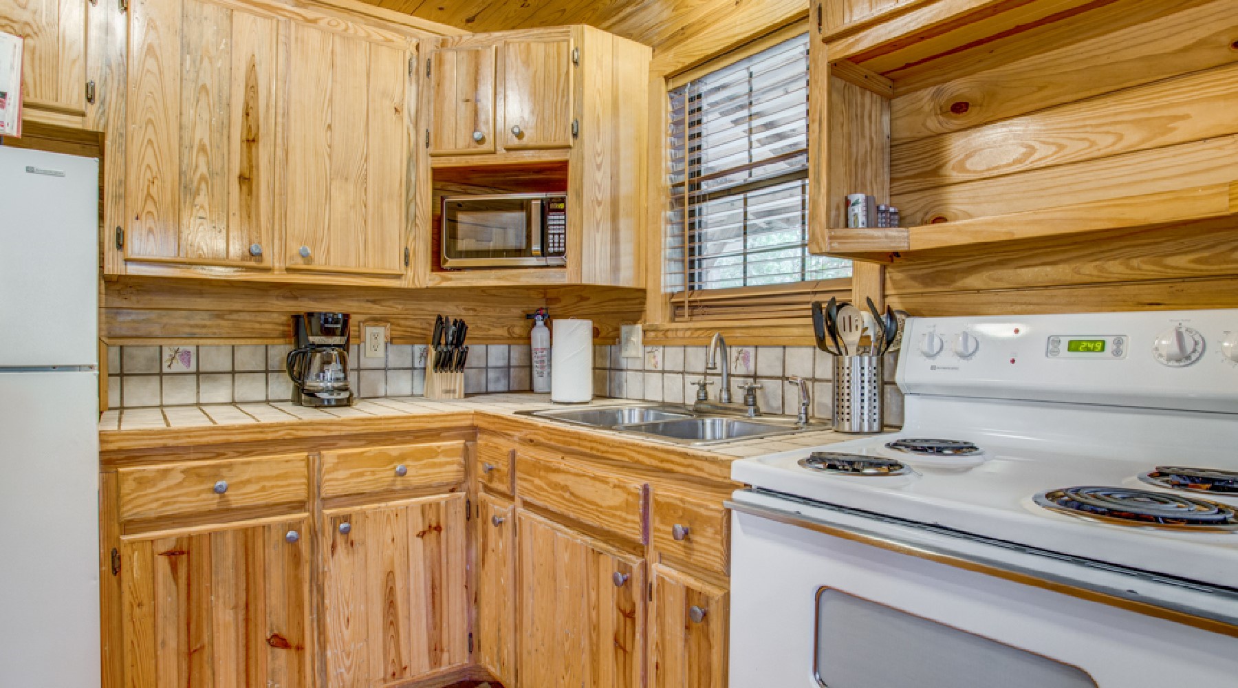 Breezy Ridge has an open downstairs living /kitchen area with a dining table seating for four. The kitchen has an electric range/oven, microwave and small appliances of toaster, crock pot, blender and hand-mixer. Automatic drip coffee maker with filters and coffee provided. Breezy Ridge does not have a dishwasher-enjoy sharing the experience of hand washing with the family as in years of past.