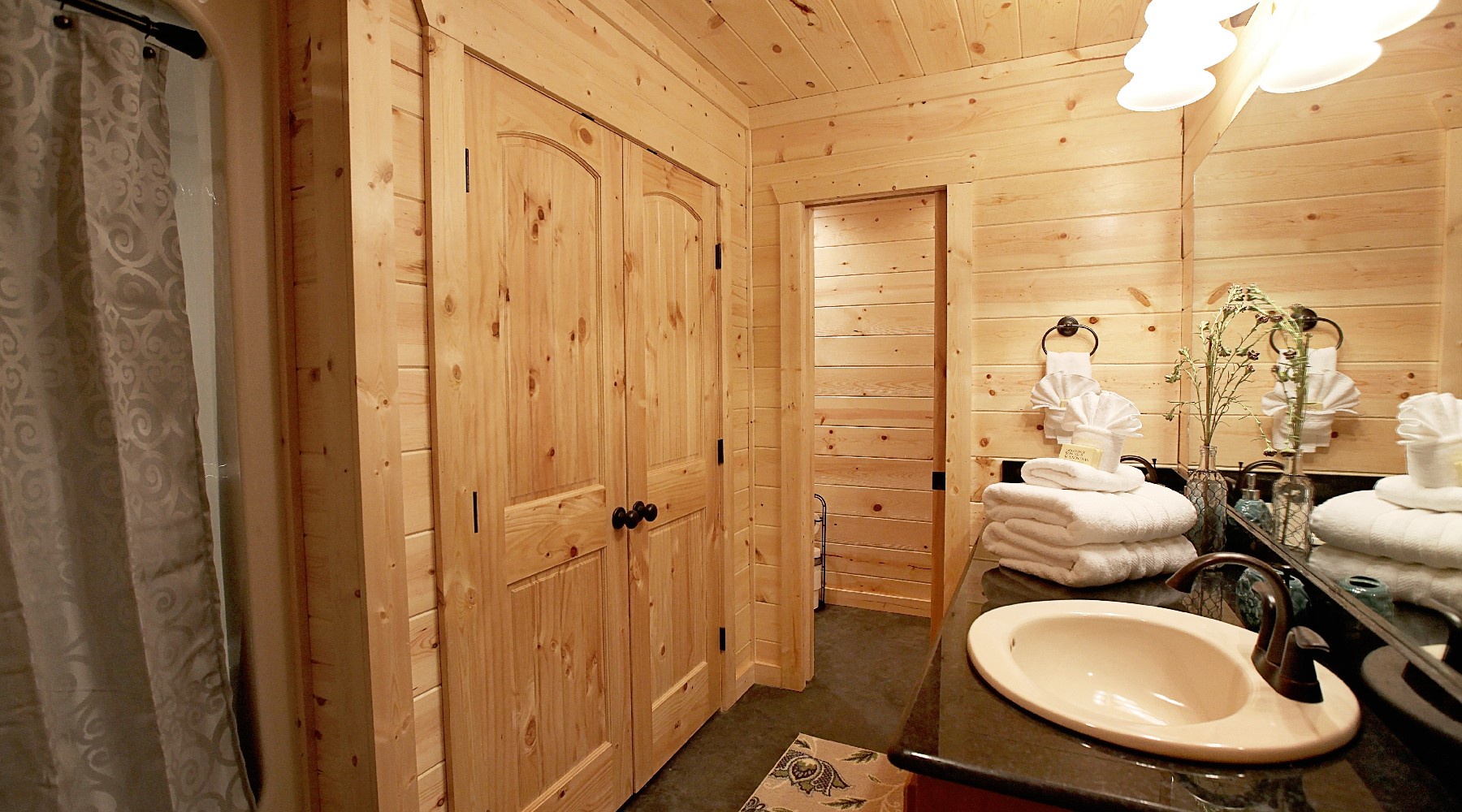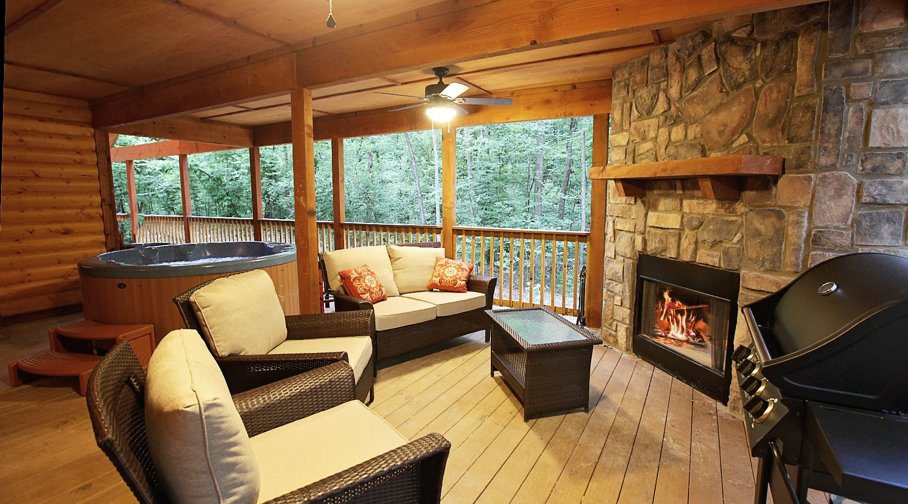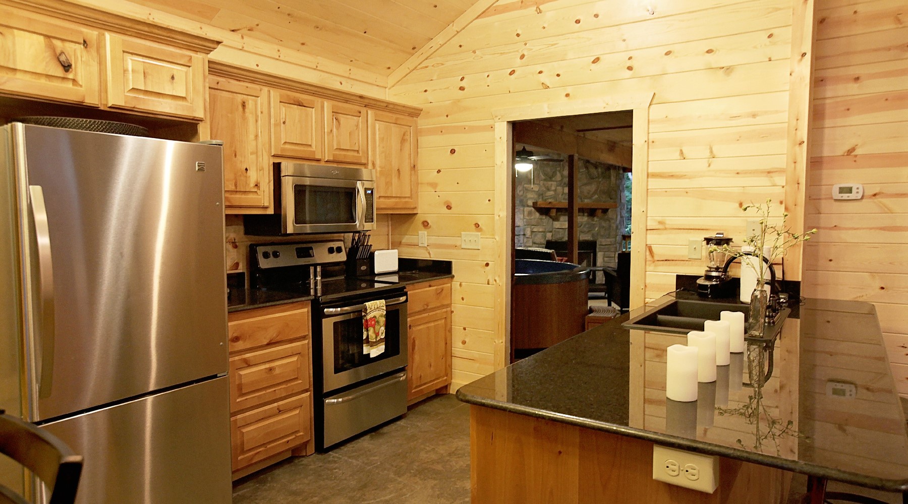 Buffalo Creek is a one-bedroom cottage built for people who appreciate luxury living and top-of-the-line amenities. The premium features start outside with a large wrap covered deck with a real wood fireplace and outdoor dining area.