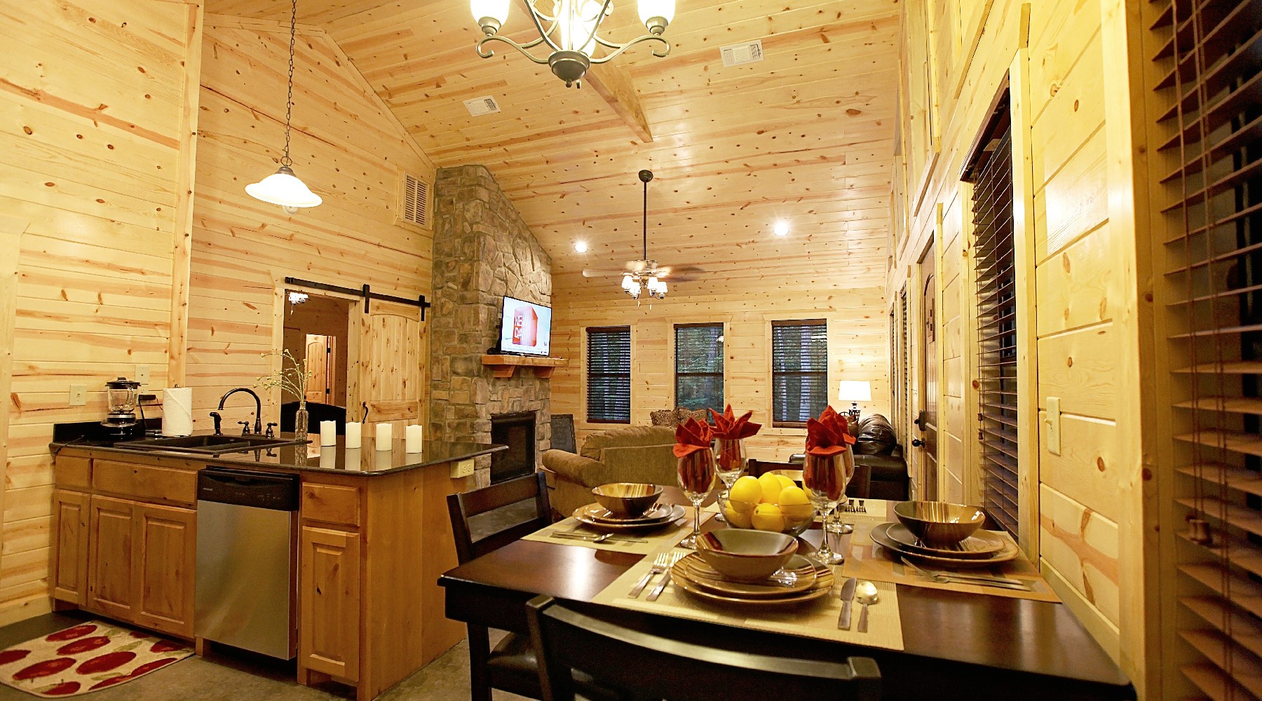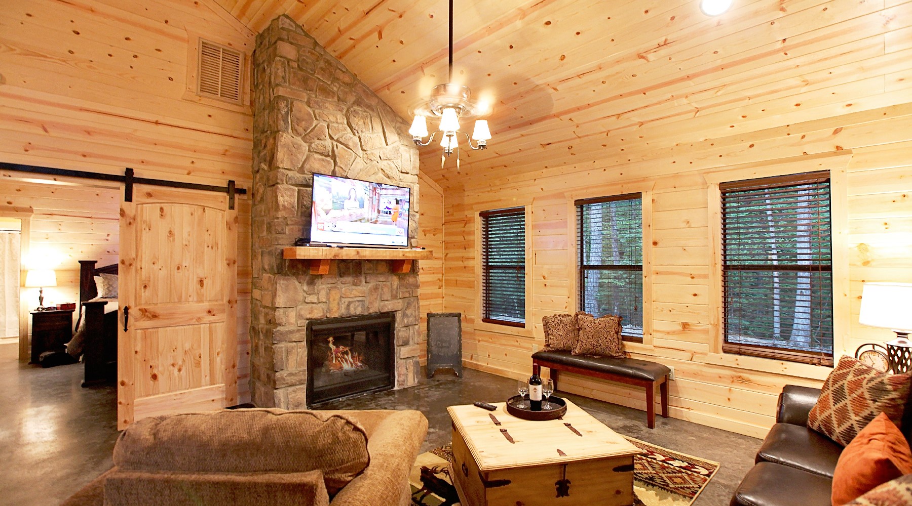 Inside you have an easy-start gas log fireplace (seasonal October 15th – April 15th) and a 50″ HDTV with DirecTV.