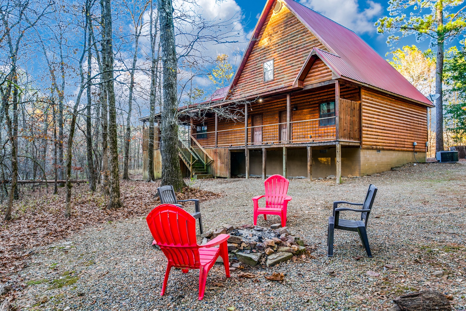 Enjoy the wood burning fire pit on the gravel grounds. The gas cook grill (propane provided) and hot tub are on the back porch.