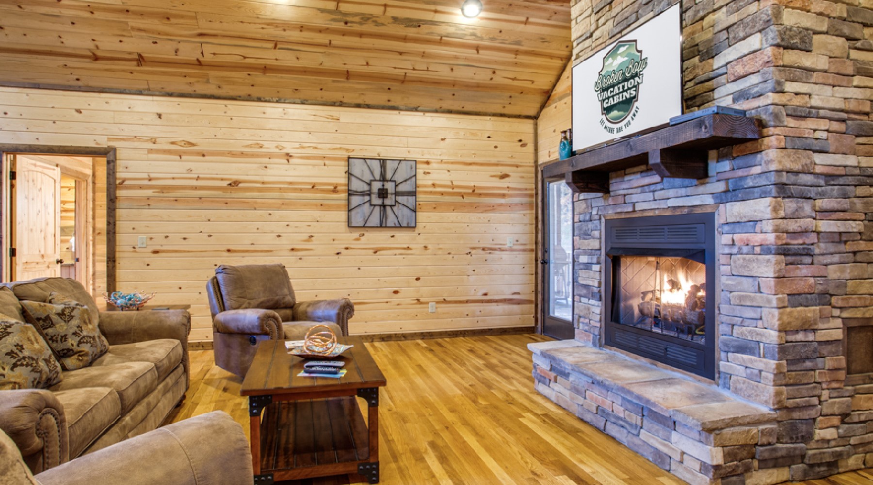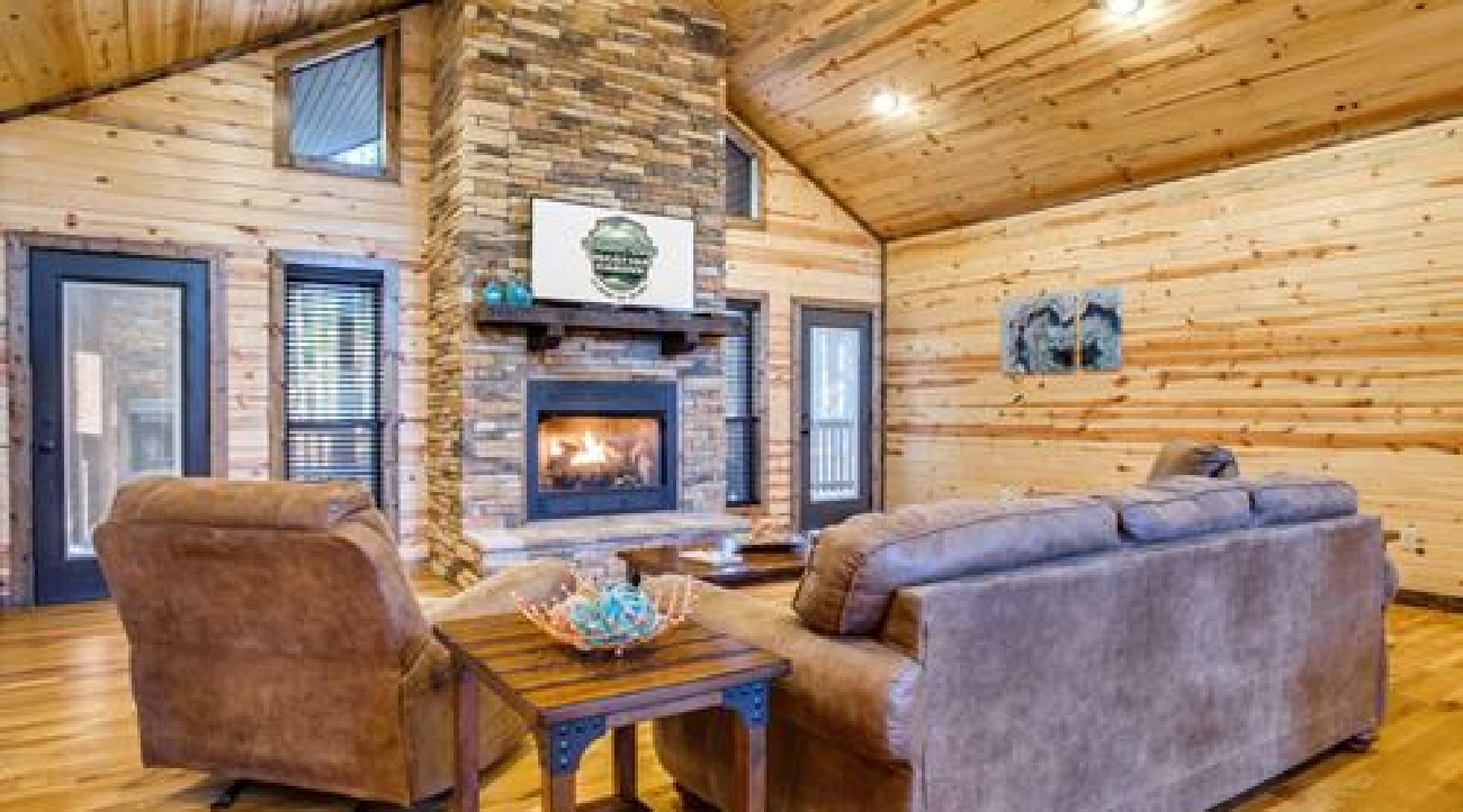 - Gas log fireplace in living area with easy turn on from switch. (Seasonal October 15th – April 15th)