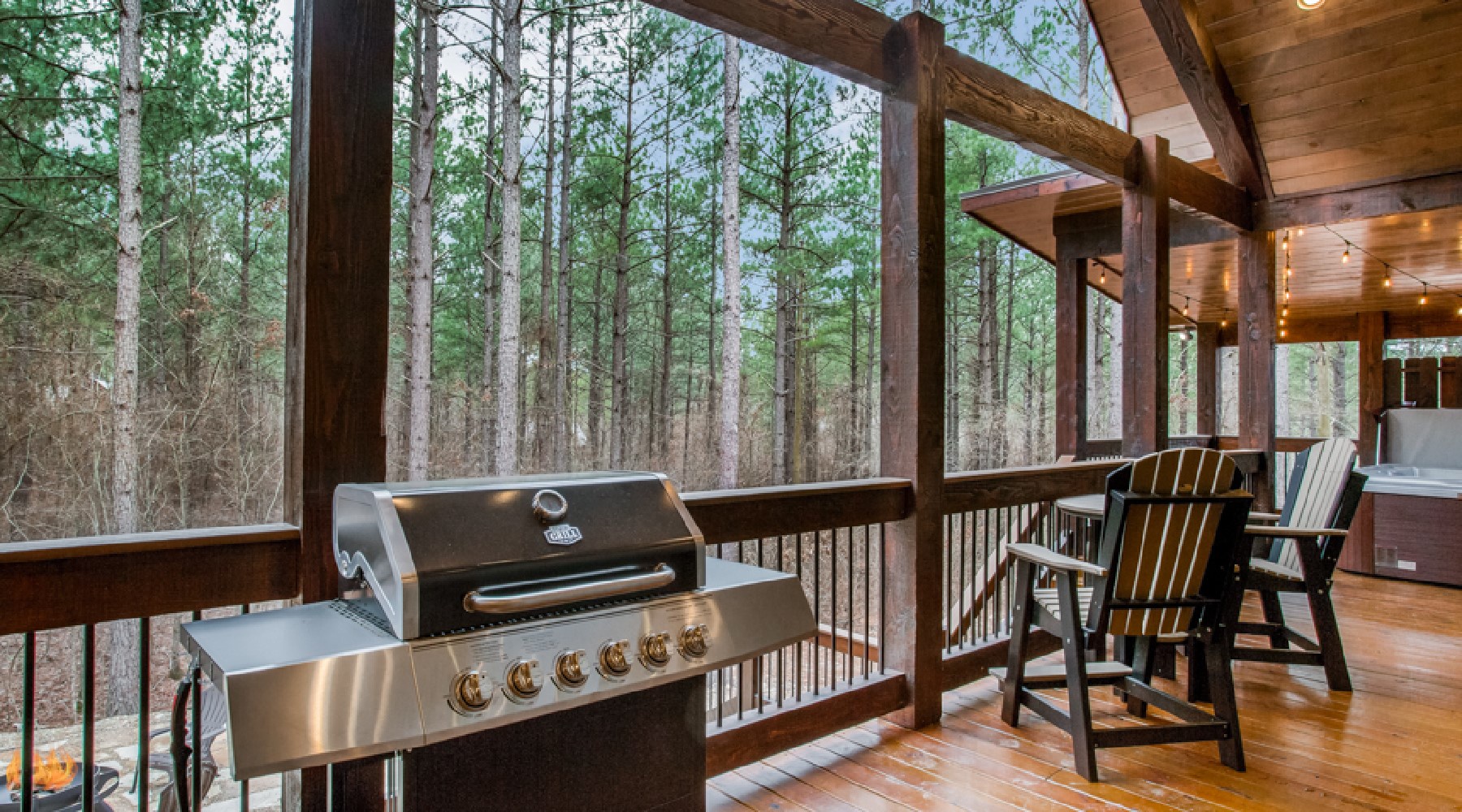 - Gas log fireplace (seasonal October 15th – April 15th) on back deck