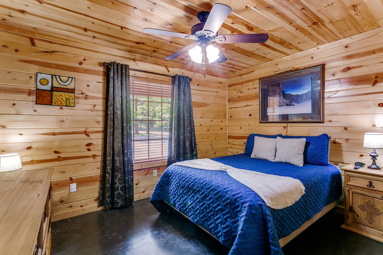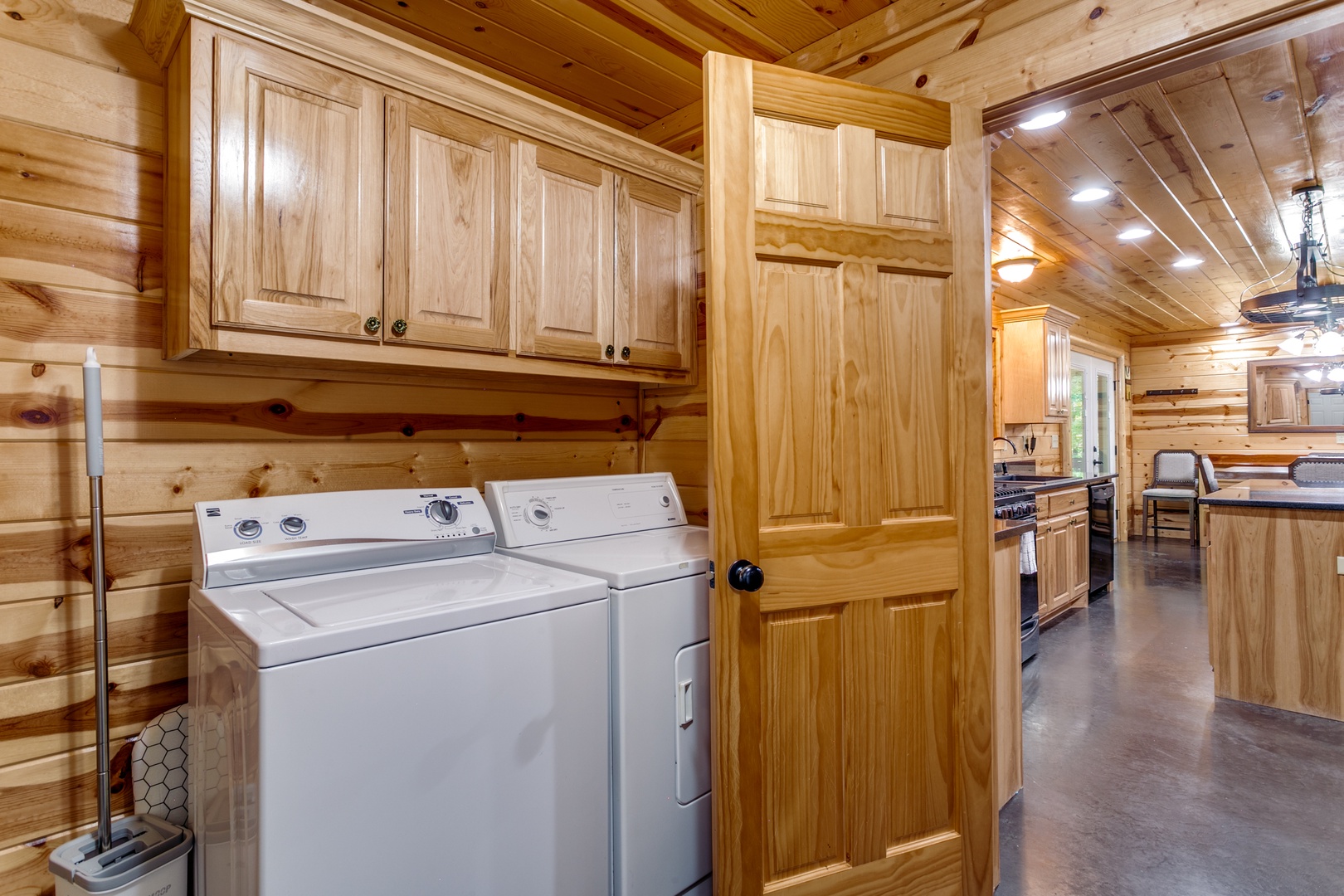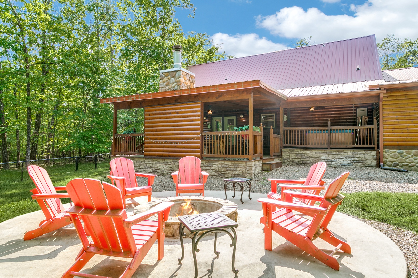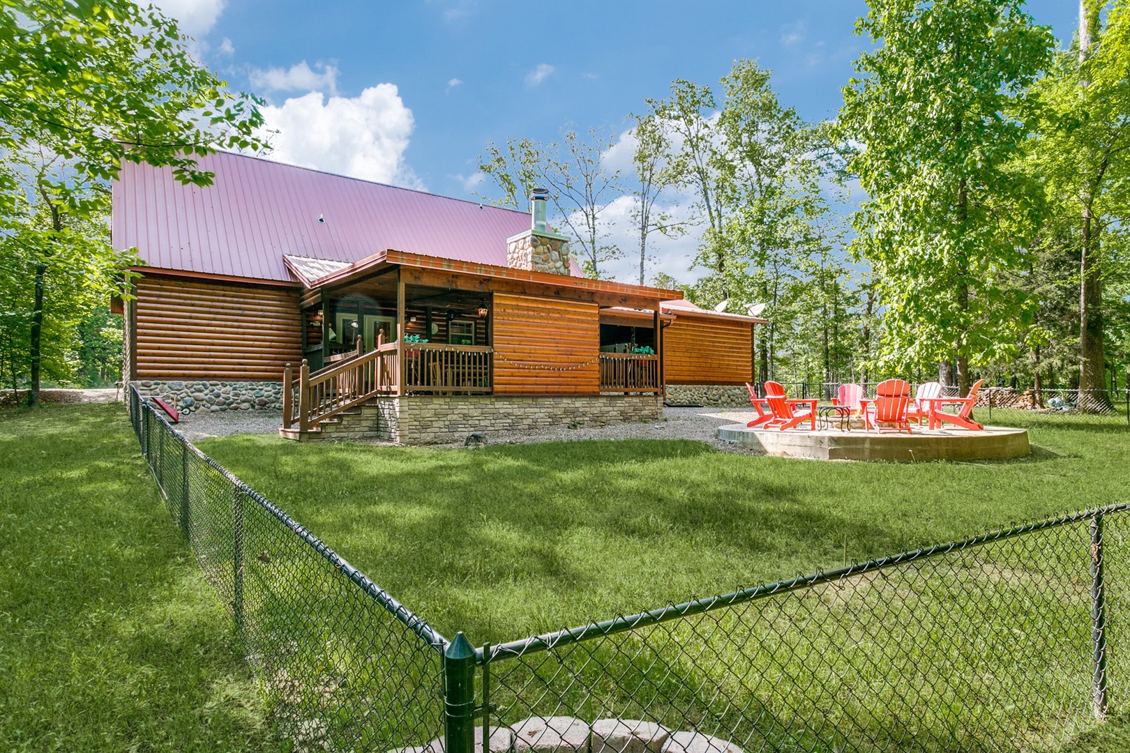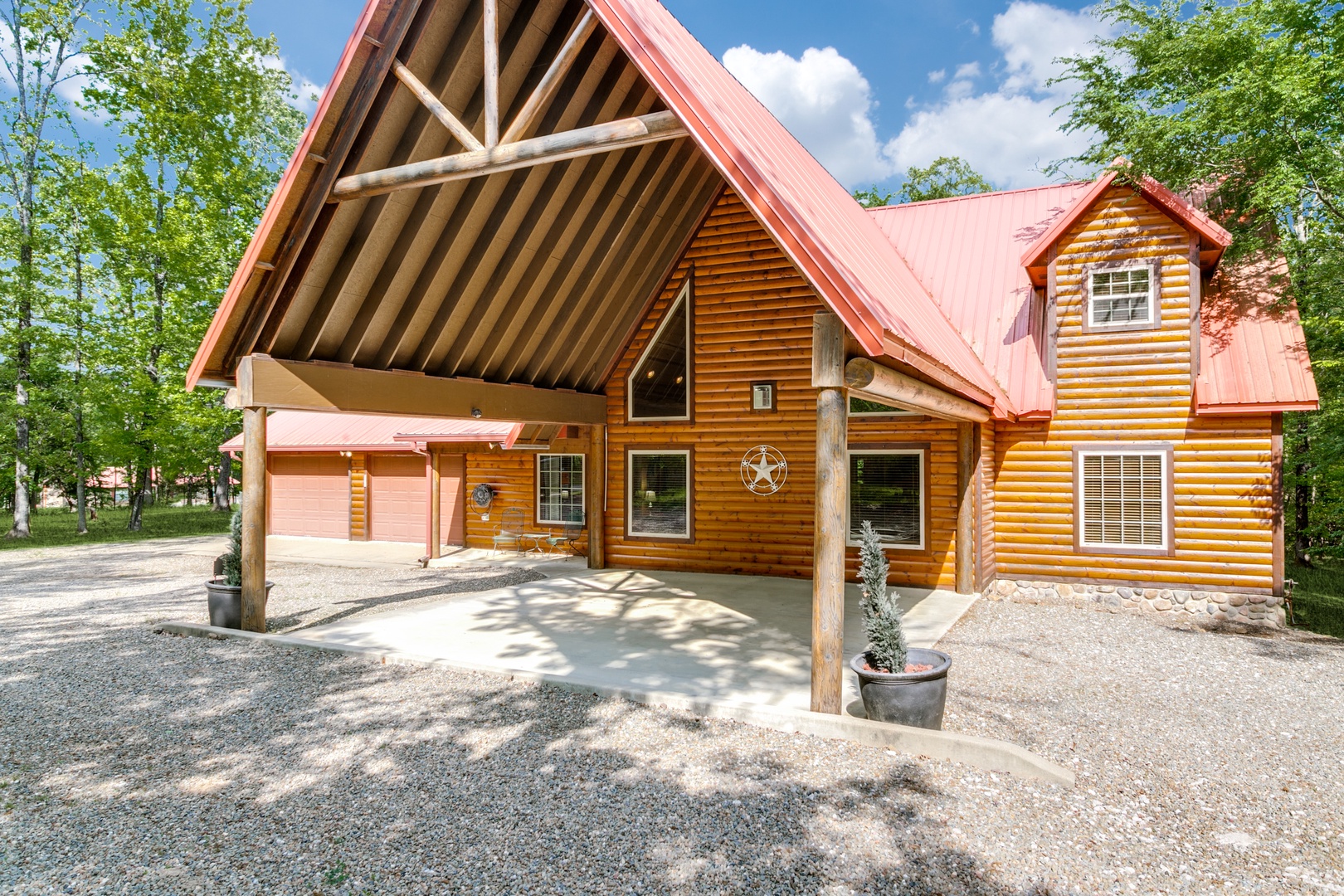 This cabin offers covered parking, a two-car garage and a fenced backyard!