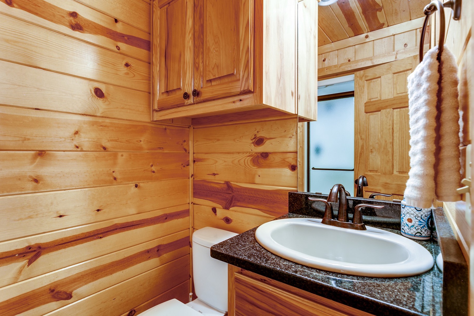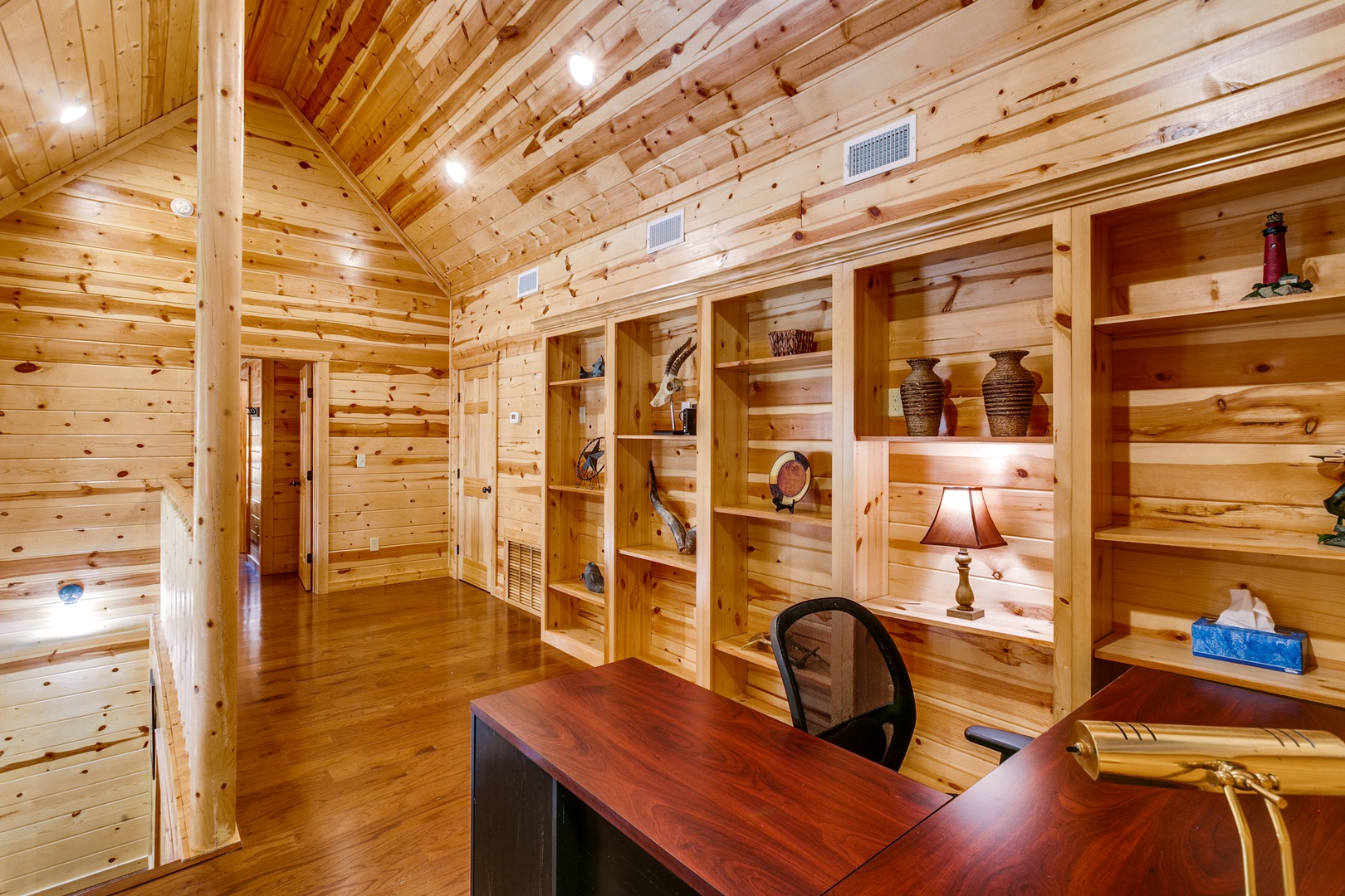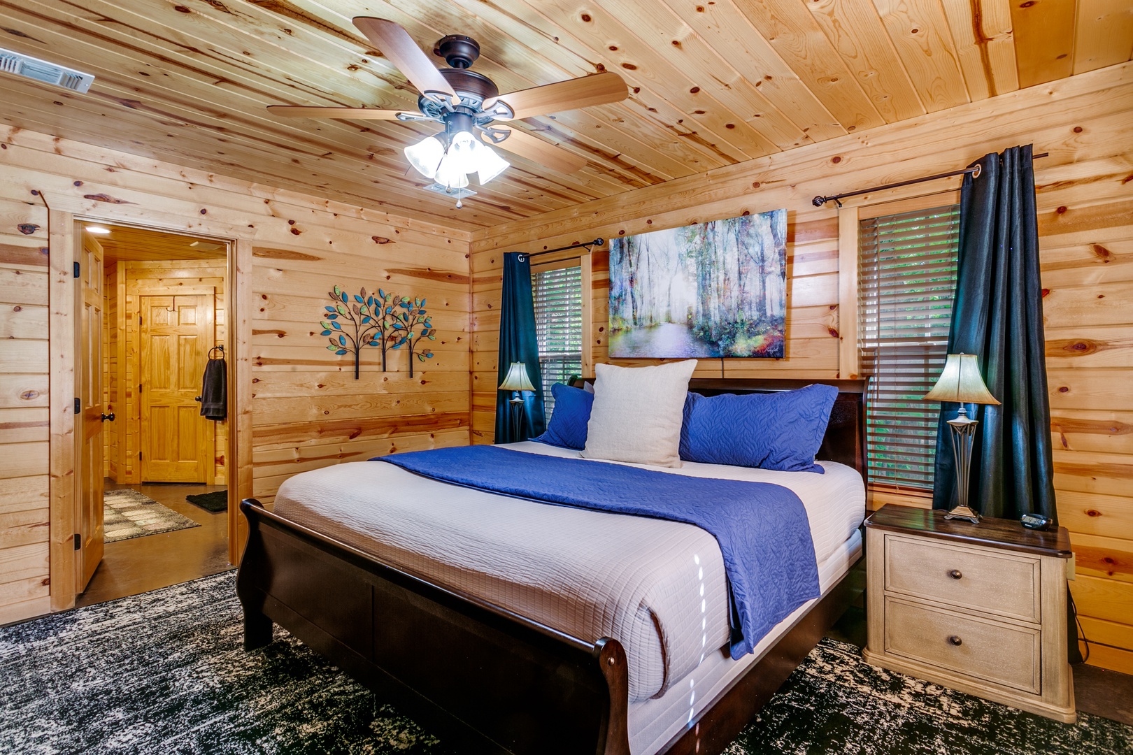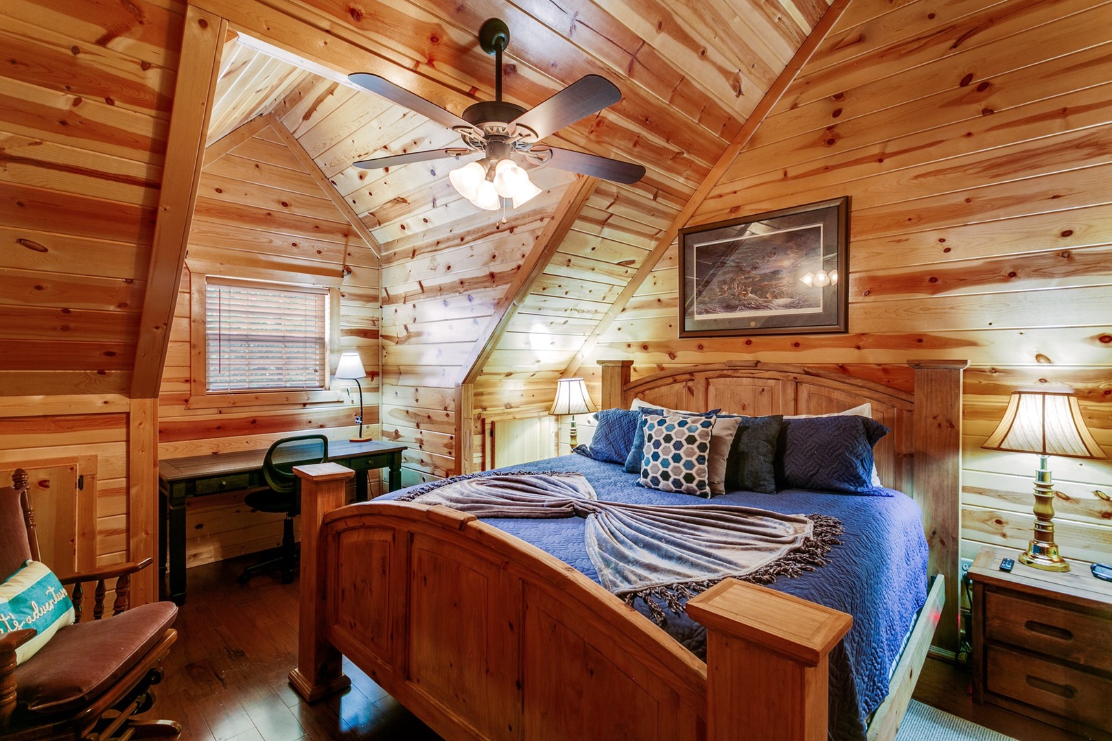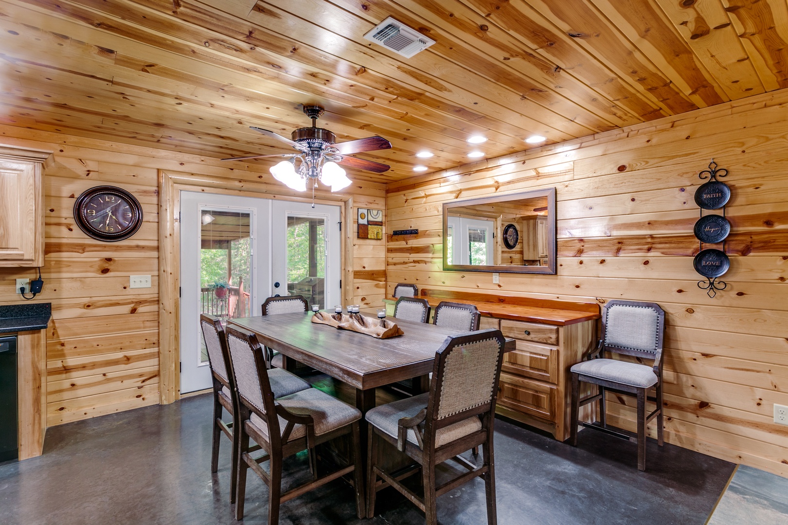 This cabin offers covered parking, a two-car garage and a fenced backyard!