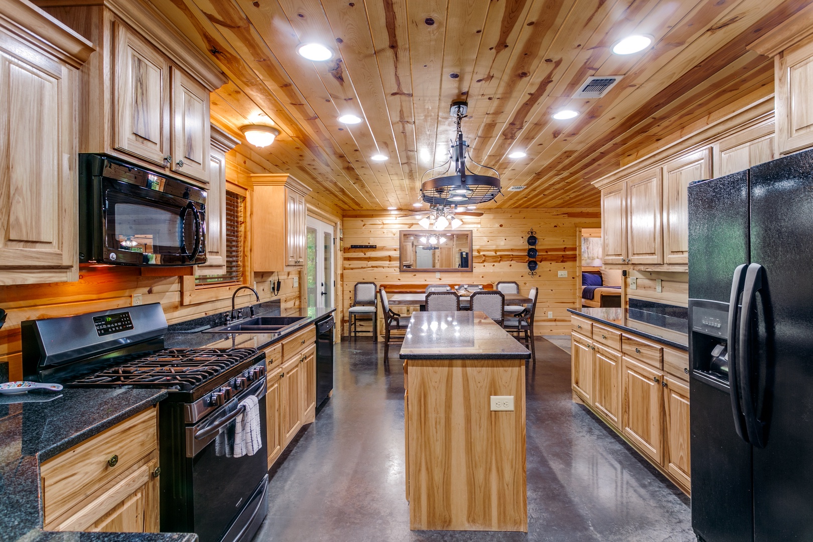 The large kitchen offers plenty of counter space for meal preparation. Appliances include double door refrigerator, gas range/oven, microwave and dishwasher. The coffee pot has option of carafe (a small amount of coffee and filters are provided) or the option of K-cup (not provided). There is a dining table that seat 6 persons
