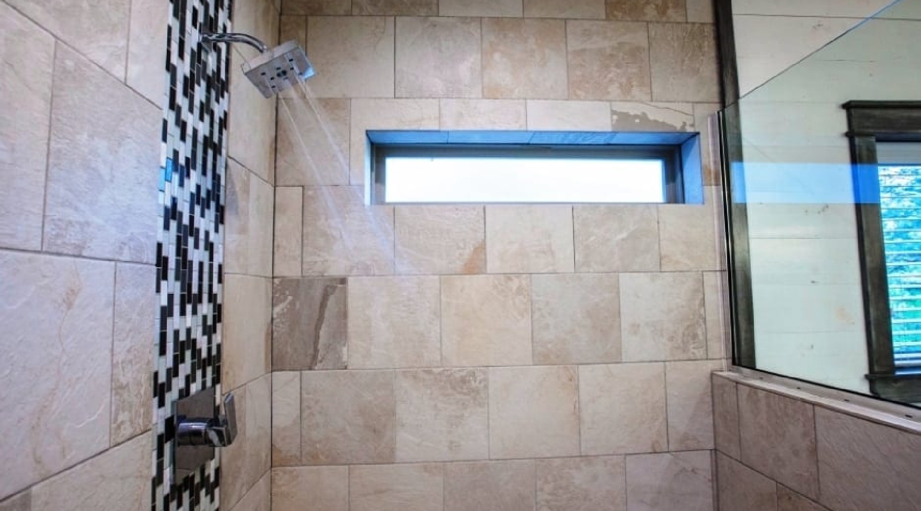 Master Bedroom beyond the sliding barn door features a king size bed wrapped in luxury linens. The master bath has a soaking bathtub and separate oversized walk-in tiled double shower. There is a laundry closet that houses washer and dryer.