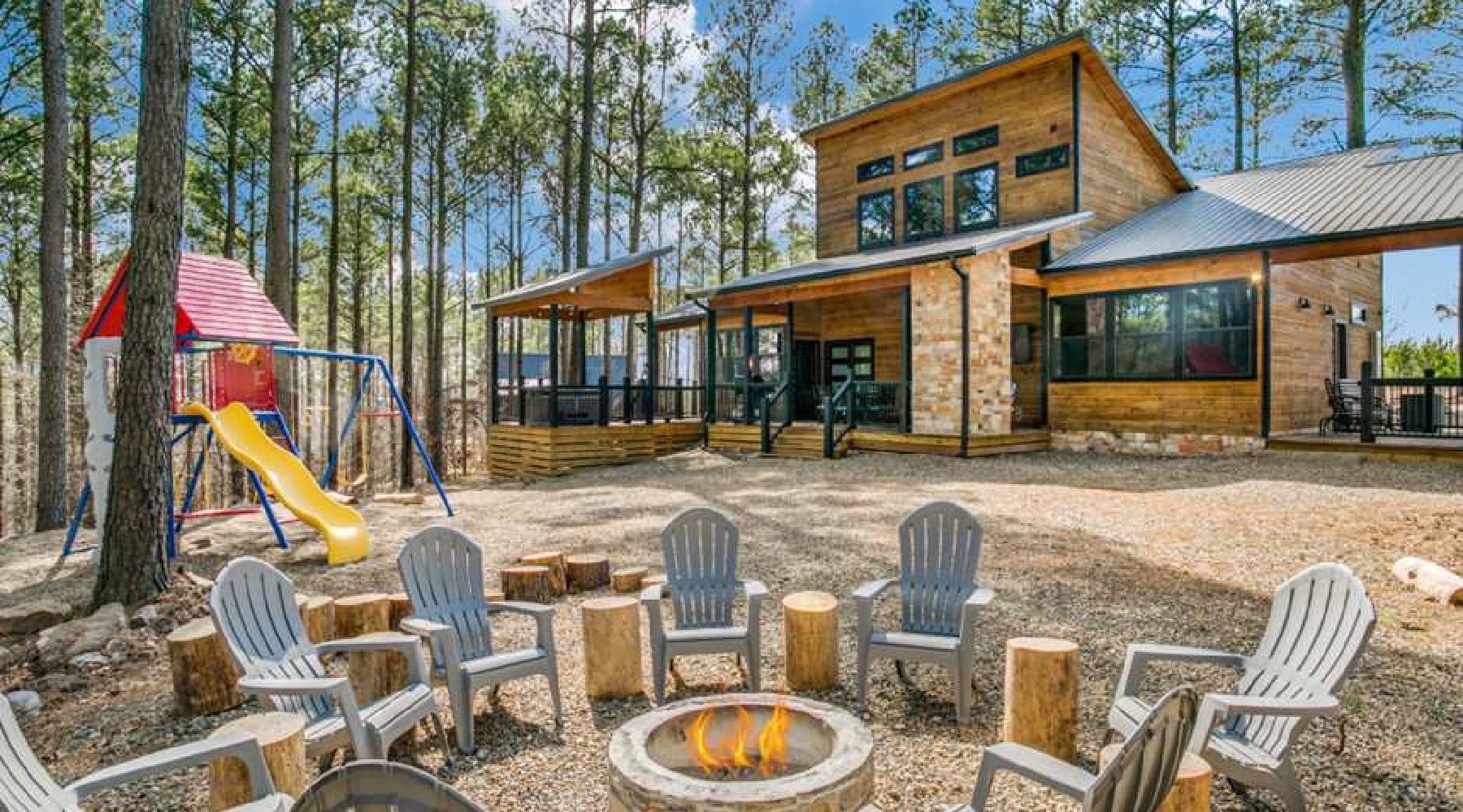 - Outdoor fire pit with Adirondack seating.