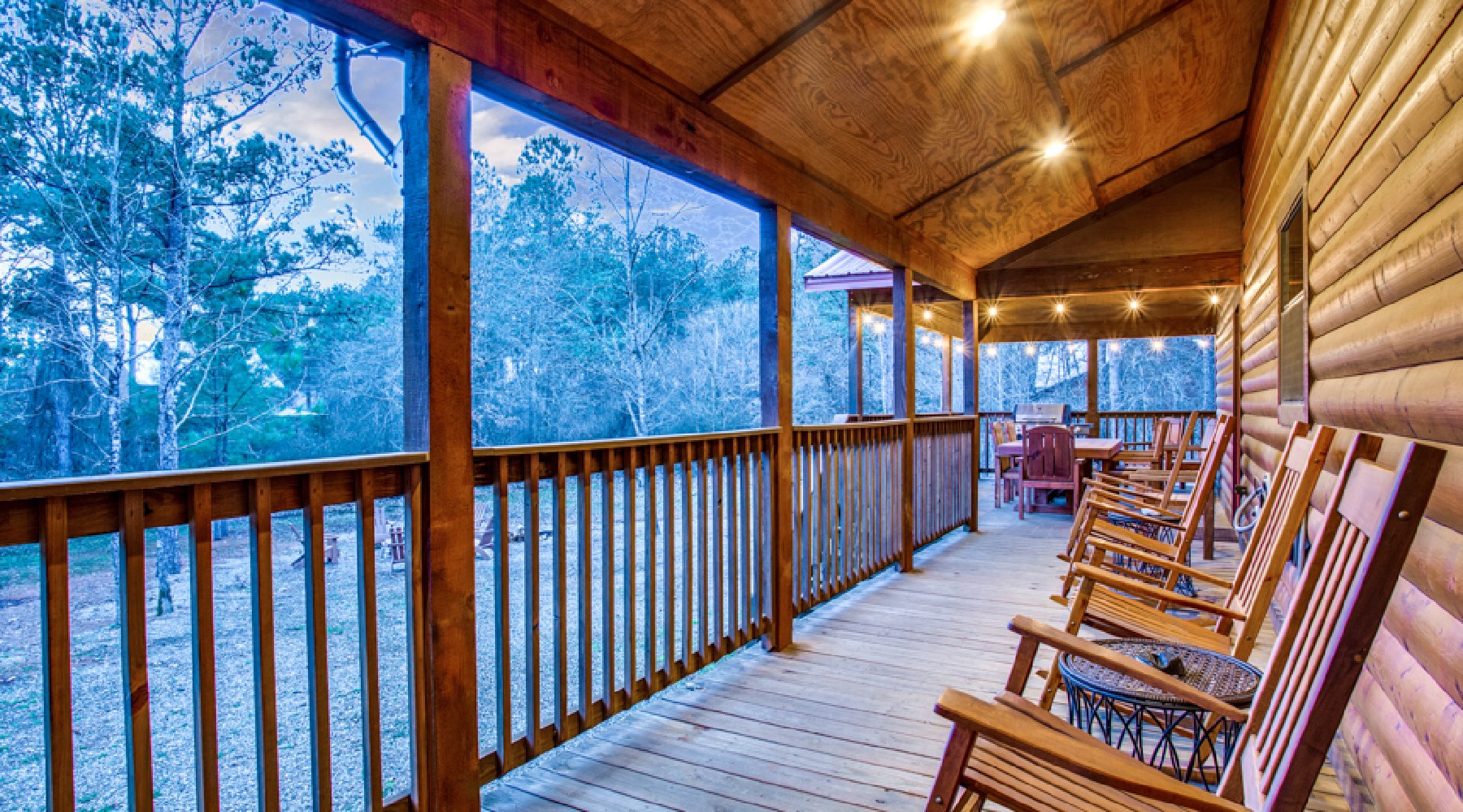 Enjoy the outdoor areas of Safe Haven with rocking chairs scattered around the porches. A large custom wood dining table that seats 8, a gas cooking grill (propane provided) and a hot tub that seats 5-6 people can be accessed on the back deck. On the gravel grounds there is a fire pit for wood fires and roasting marshmallows under the stars. There are horseshoe pits on the grounds for outdoor entertainment.