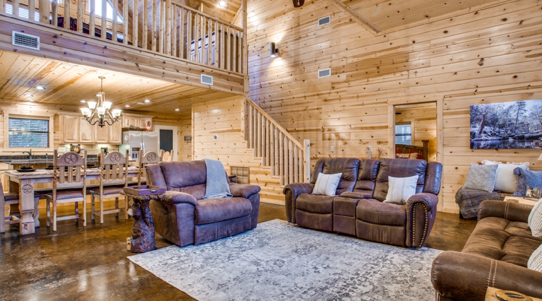 Escape to Broken Bow with friends and family to enjoy the luxurious surroundings of the Safe Haven Cabin. Conveniently located in Kaniatobe Trails West development, this open floor plan offers a warm and inviting atmosphere with plenty of space for everyone to gather.