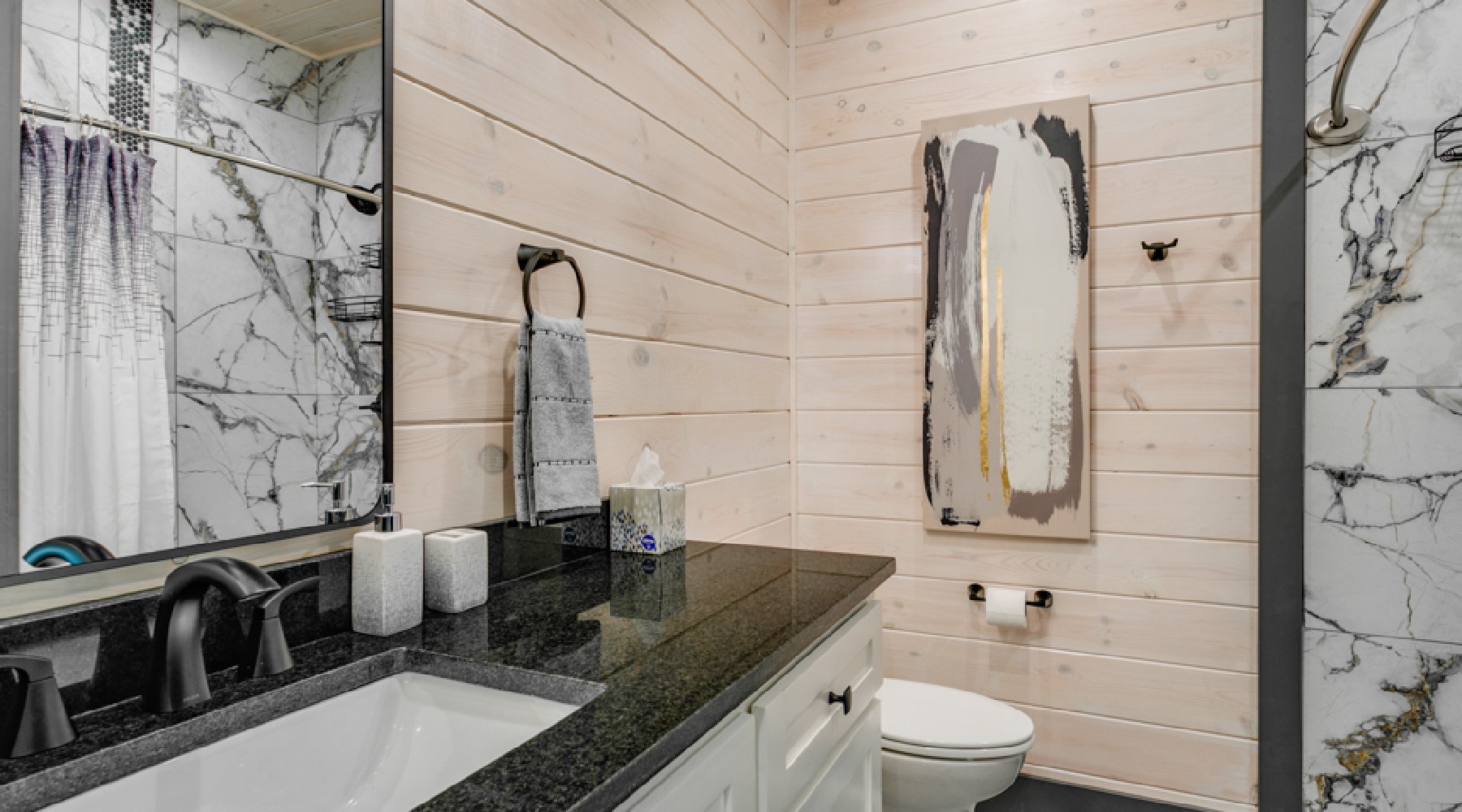 - Double sinks with granite vanity top