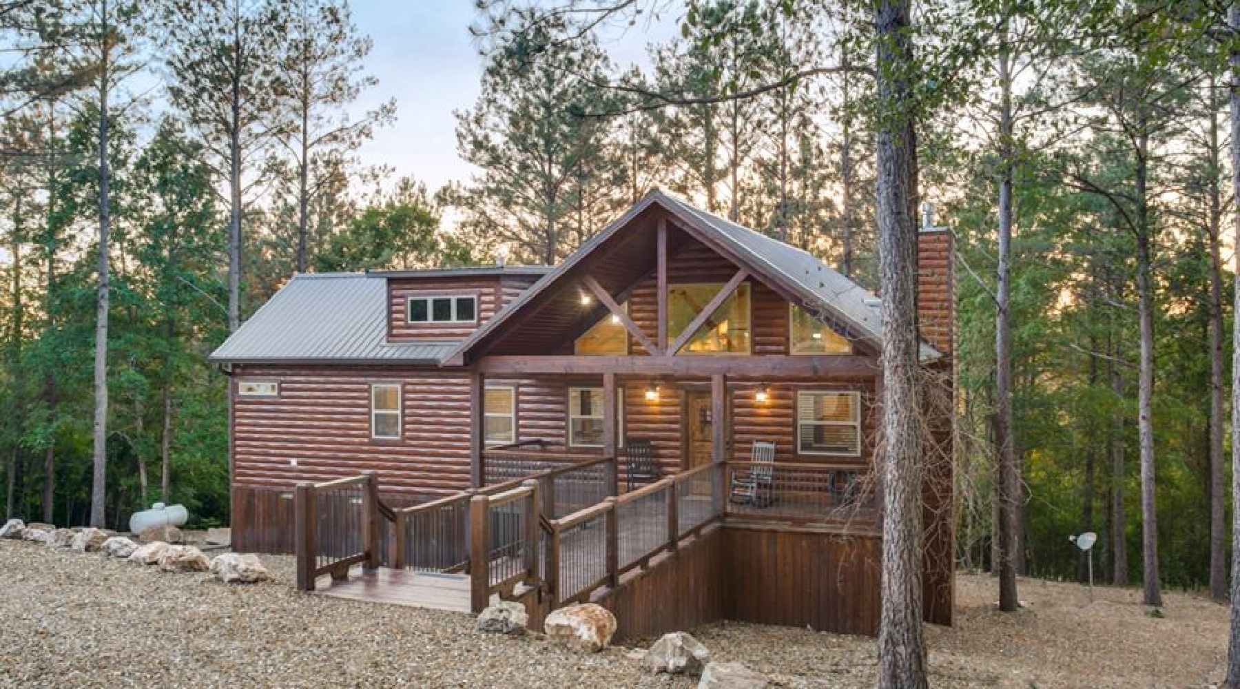 Somewhere In Time is a one-bedroom cabin set on a picturesque lot in the woods of Southeast Oklahoma. Stroll down a craftsman wood bridge to the front door where you will begin a relaxing stay in the Broken Bow area.