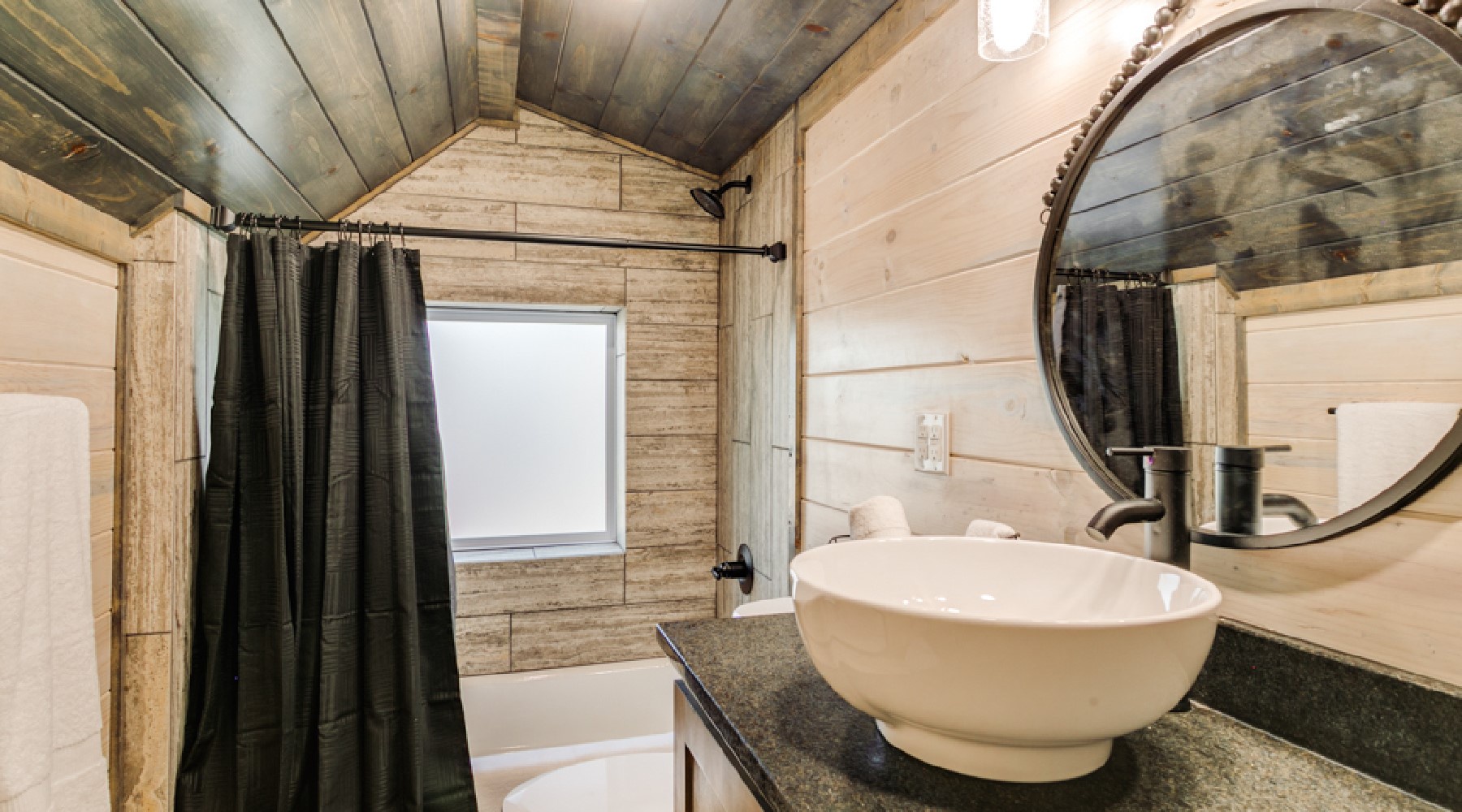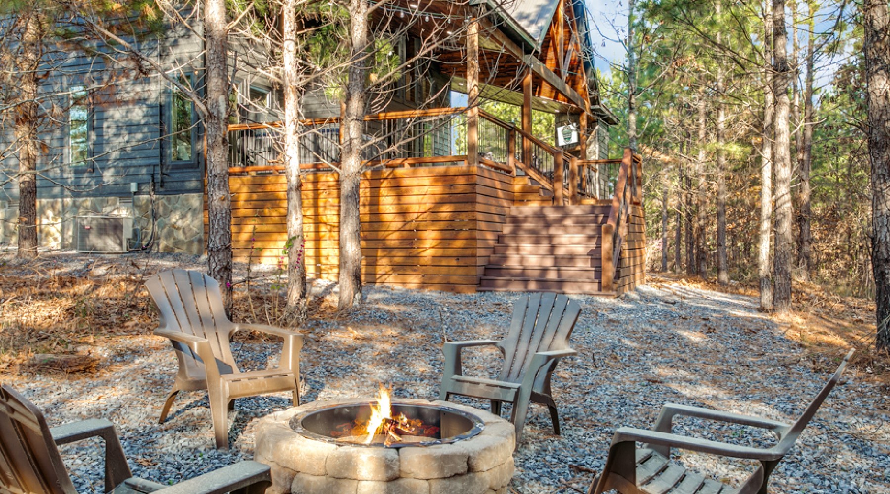 Out the back deck, accessed from the living area, there is a second gas log fireplace (seasonal October-April) with seating. A large dining table on the deck seats 6. Enjoy the hot tub or a game of corn hole on the deck or venture down the steps to a fire pit.