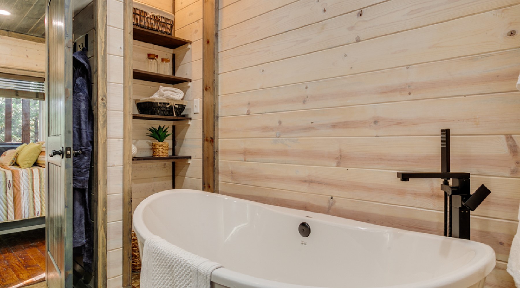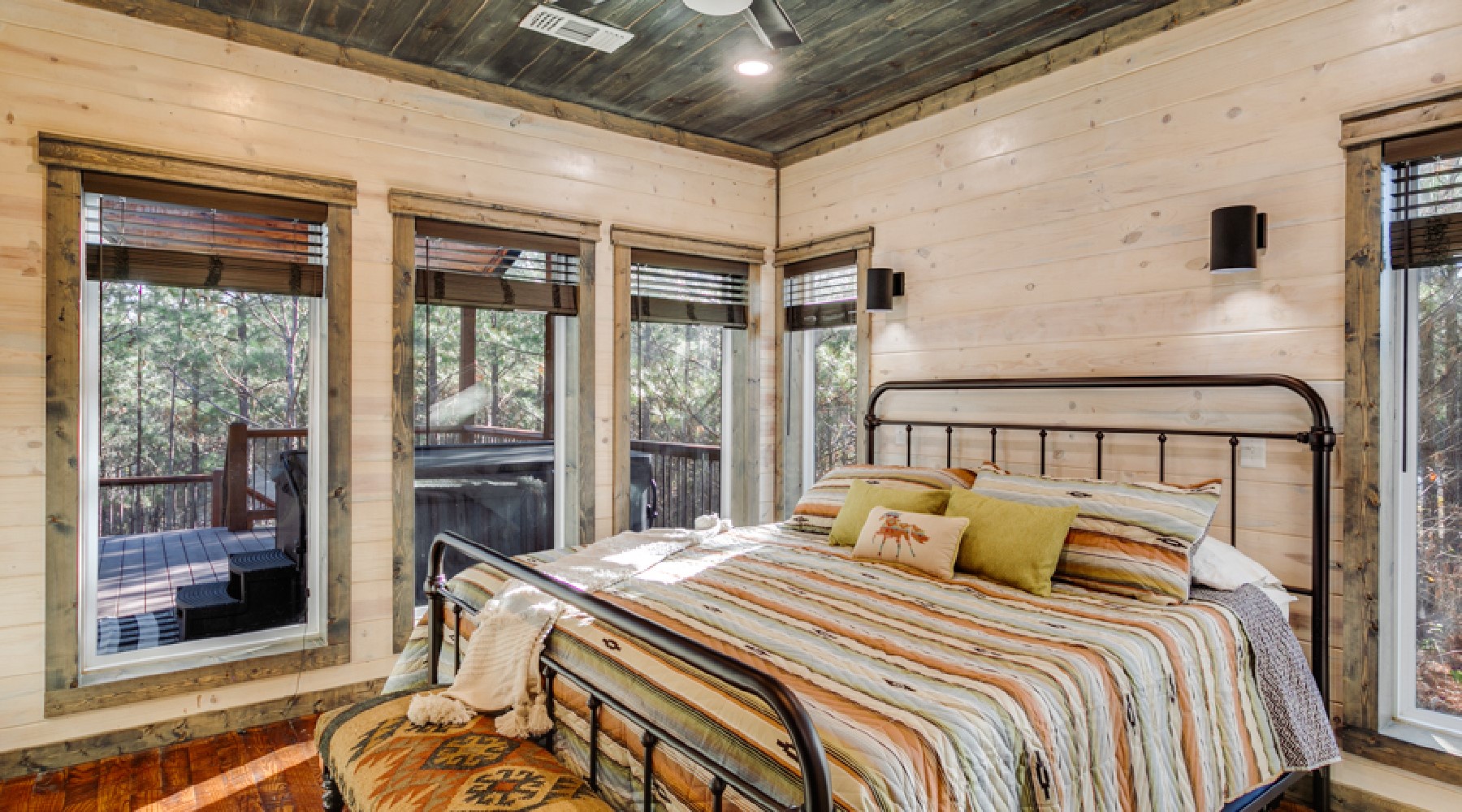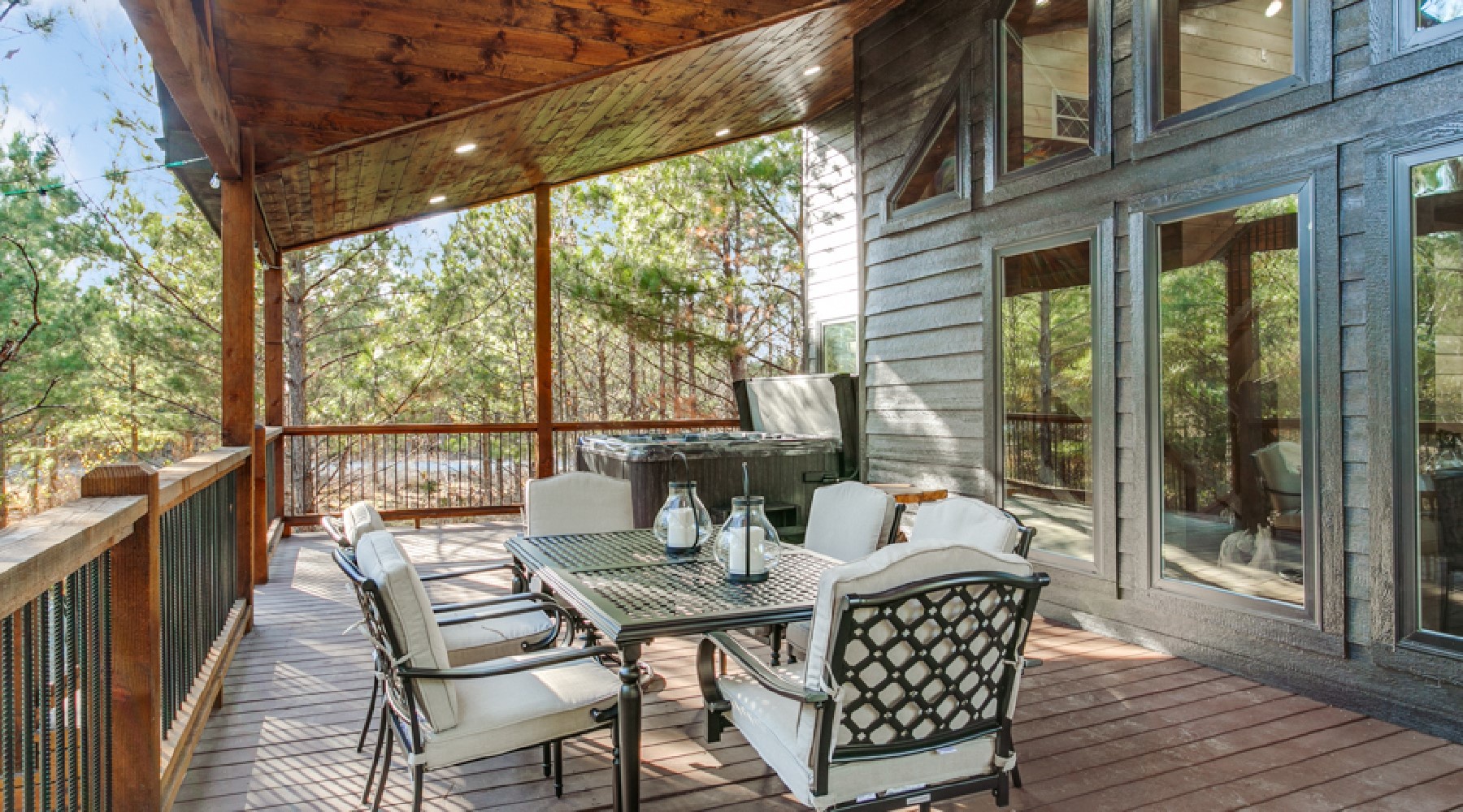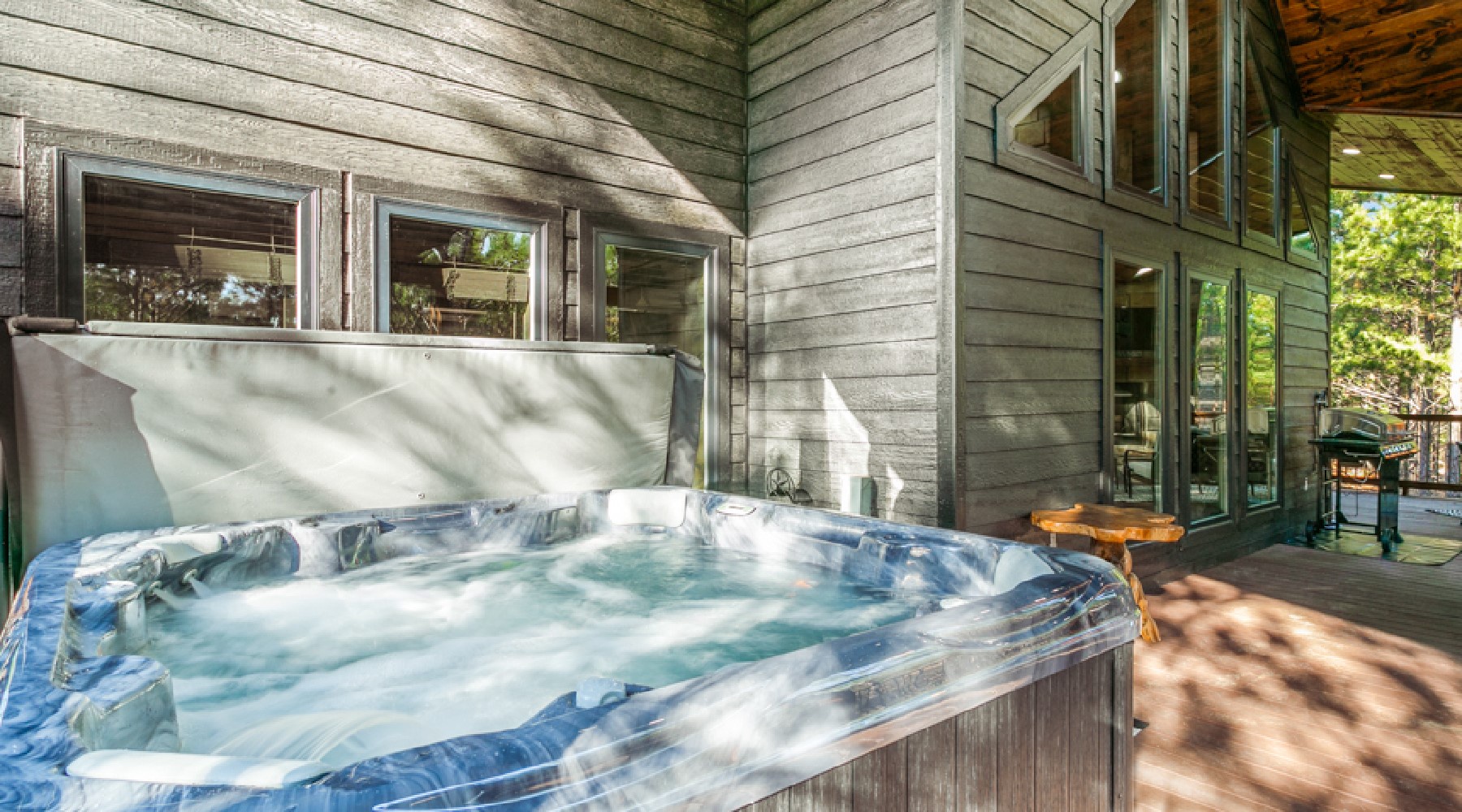 - Outdoor hot tub that accommodates 4-5 people (hot tub is drained and cleaned after each guest visit)