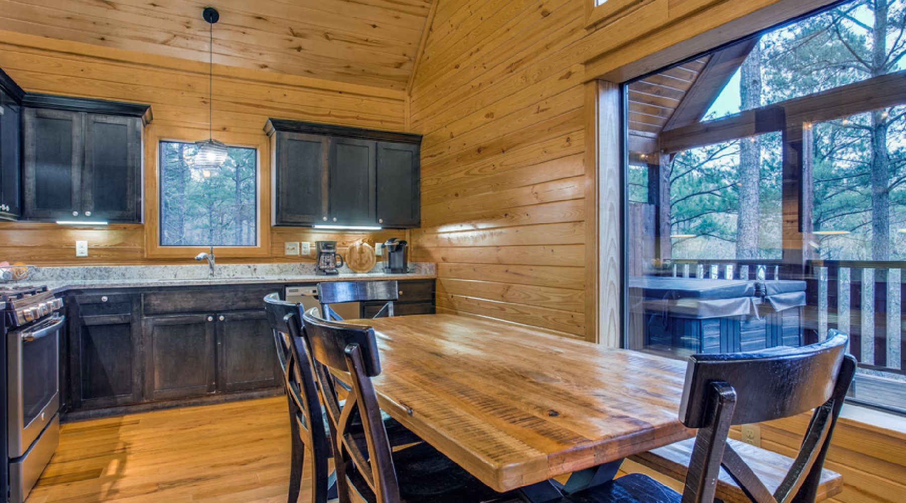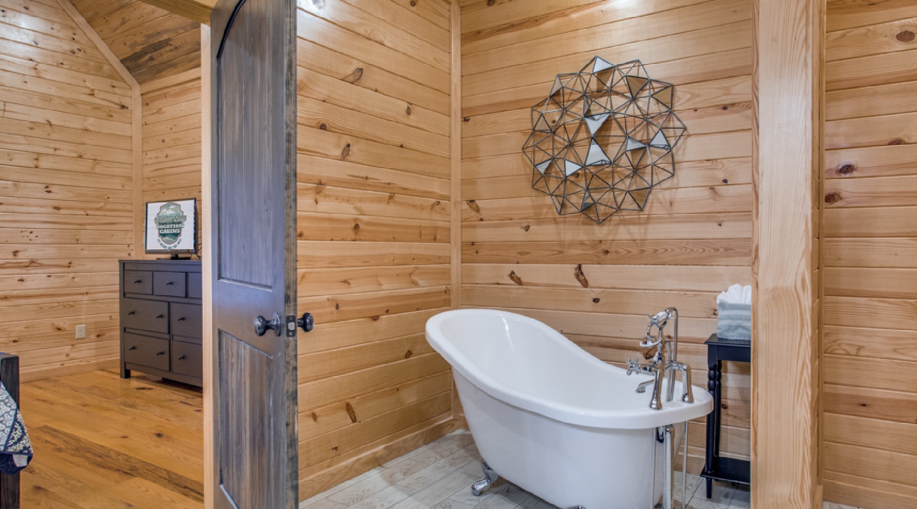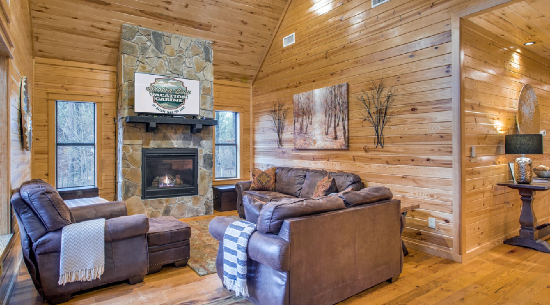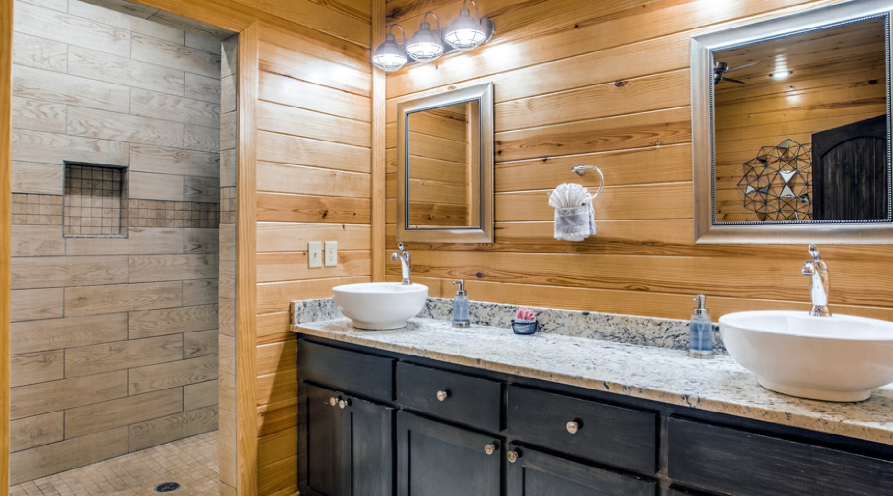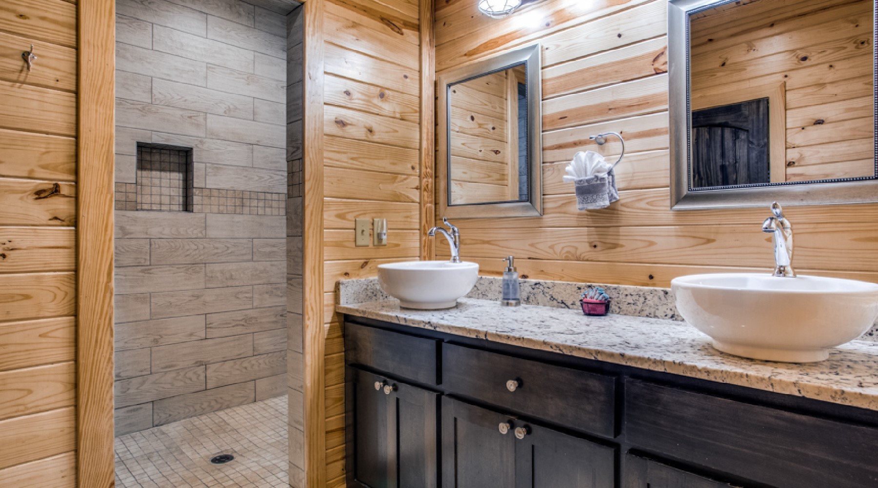 Twice as Nice is a two-bedroom cabin for people who appreciate luxury living while enjoying the serene outdoors.