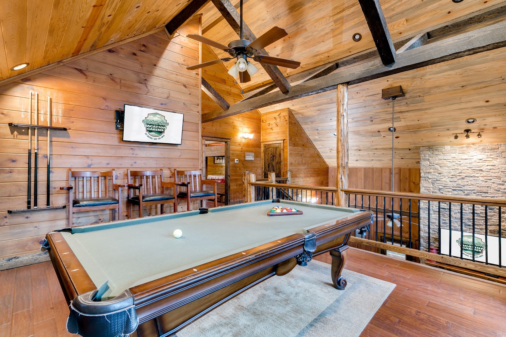- Loft area with pool table; 65” HDTV; DirecTV (PPV not available)
