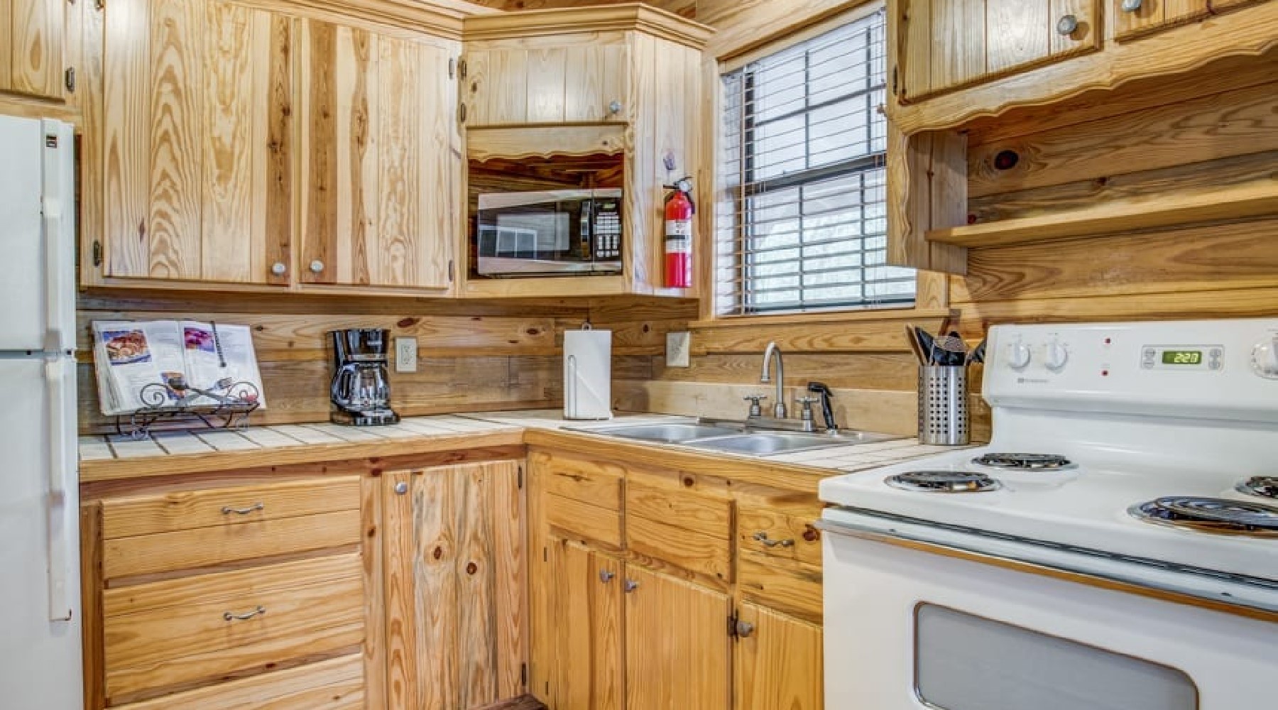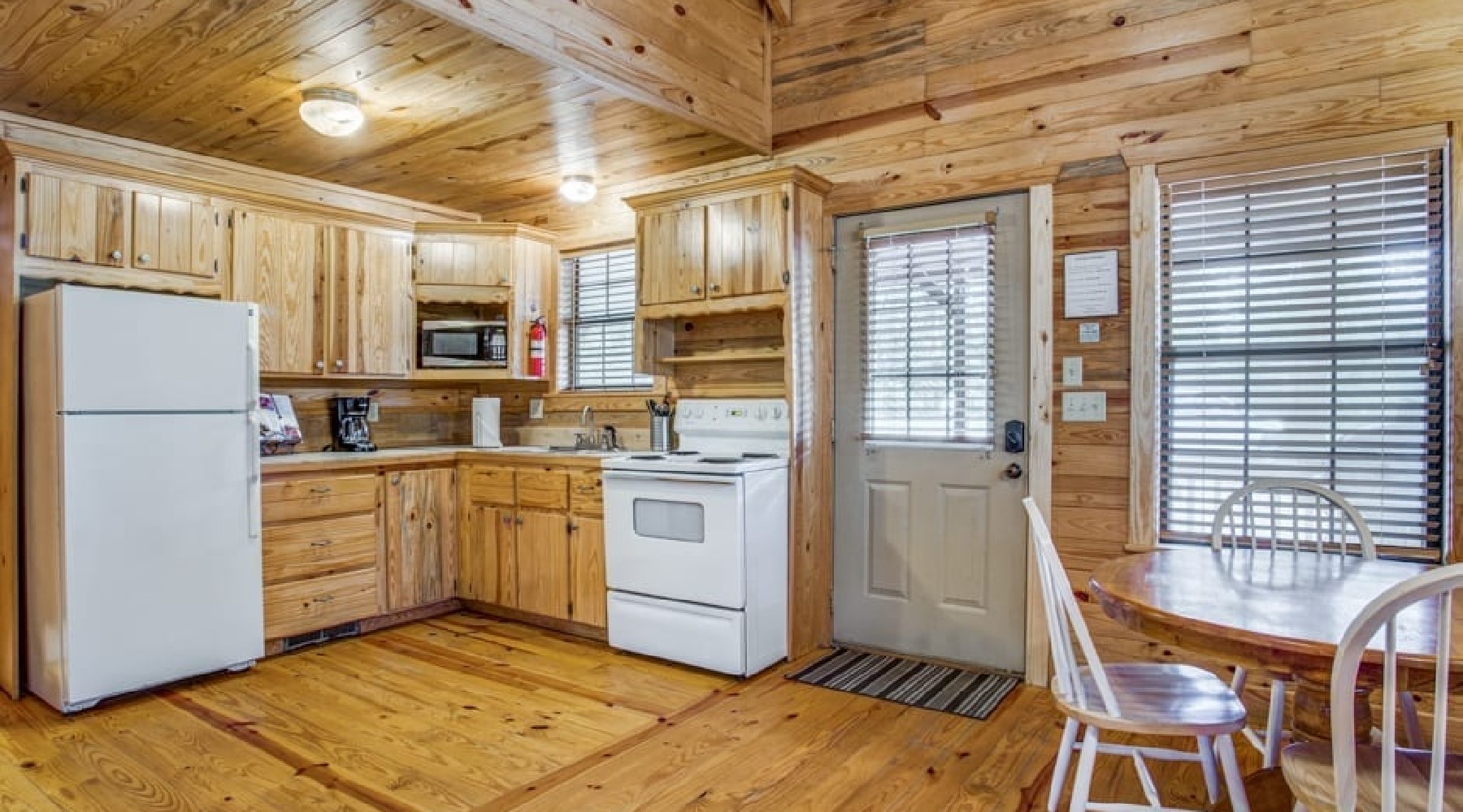 Walnut Ridge has an open downstairs living /kitchen area with a dining table seating for four. The kitchen has an electric range/oven, microwave and small appliances of toaster, crock pot, blender and hand-mixer. Automatic drip coffee maker with filters and coffee provided. Walnut Ridge does not have a dishwasher-enjoy sharing the experience of hand washing with the family as in years past.