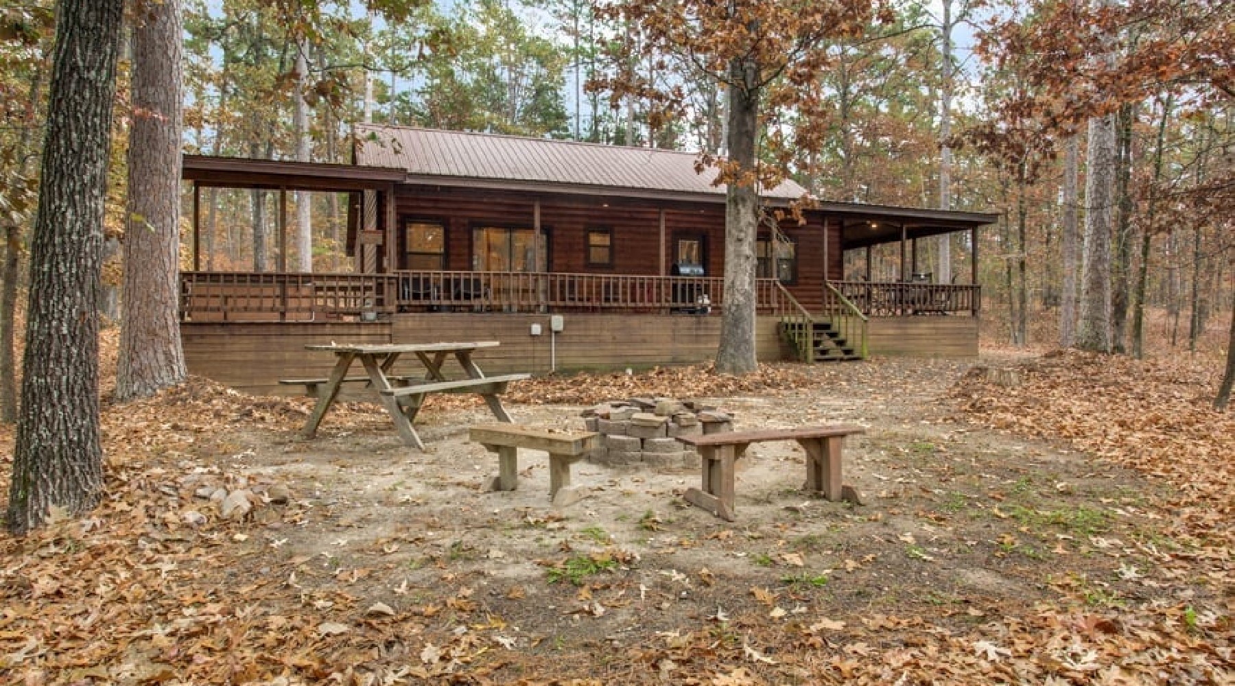 The Whispering Pines Cabin is located in the Northern Hills addition just north of Broken Bow Lake. It is approximately one mile from the Cedar Creek Golf Course entrance and as well as one mile from the National Forest ATV trails. (Please check with the Forestry department for current ATV riding map). The cabin sits on 1.62 acres with a circle drive for ample parking of boats and ATV trailers.