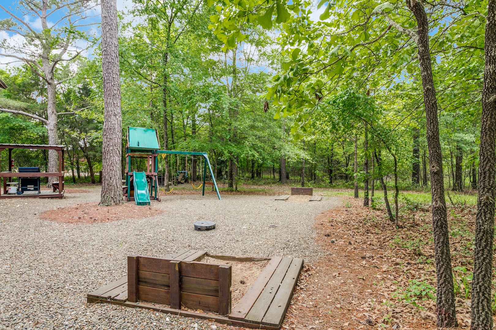 On the grounds, you’ll find a fire pit to get that real outdoor feeling, make some s’mores, listen to music or tell scary stories…. make some memories. A playground welcomes your little ones, there’s a corn hole game set or full-size horseshoe pit for friendly competition.