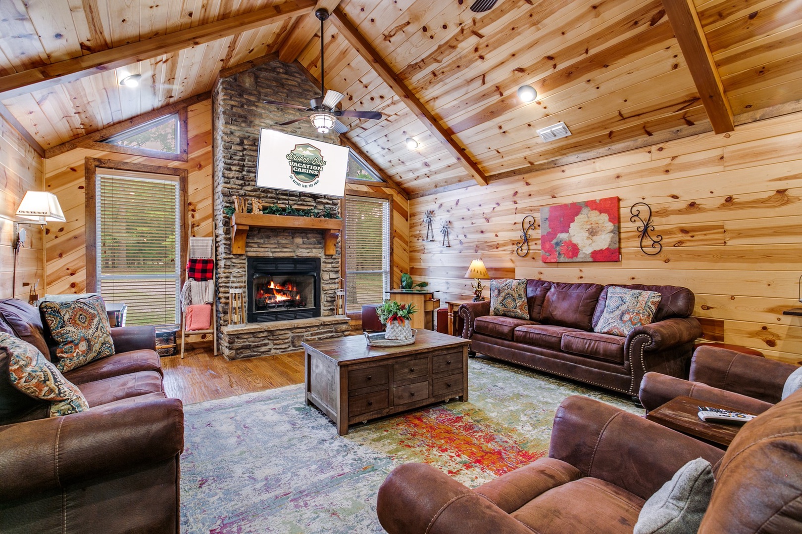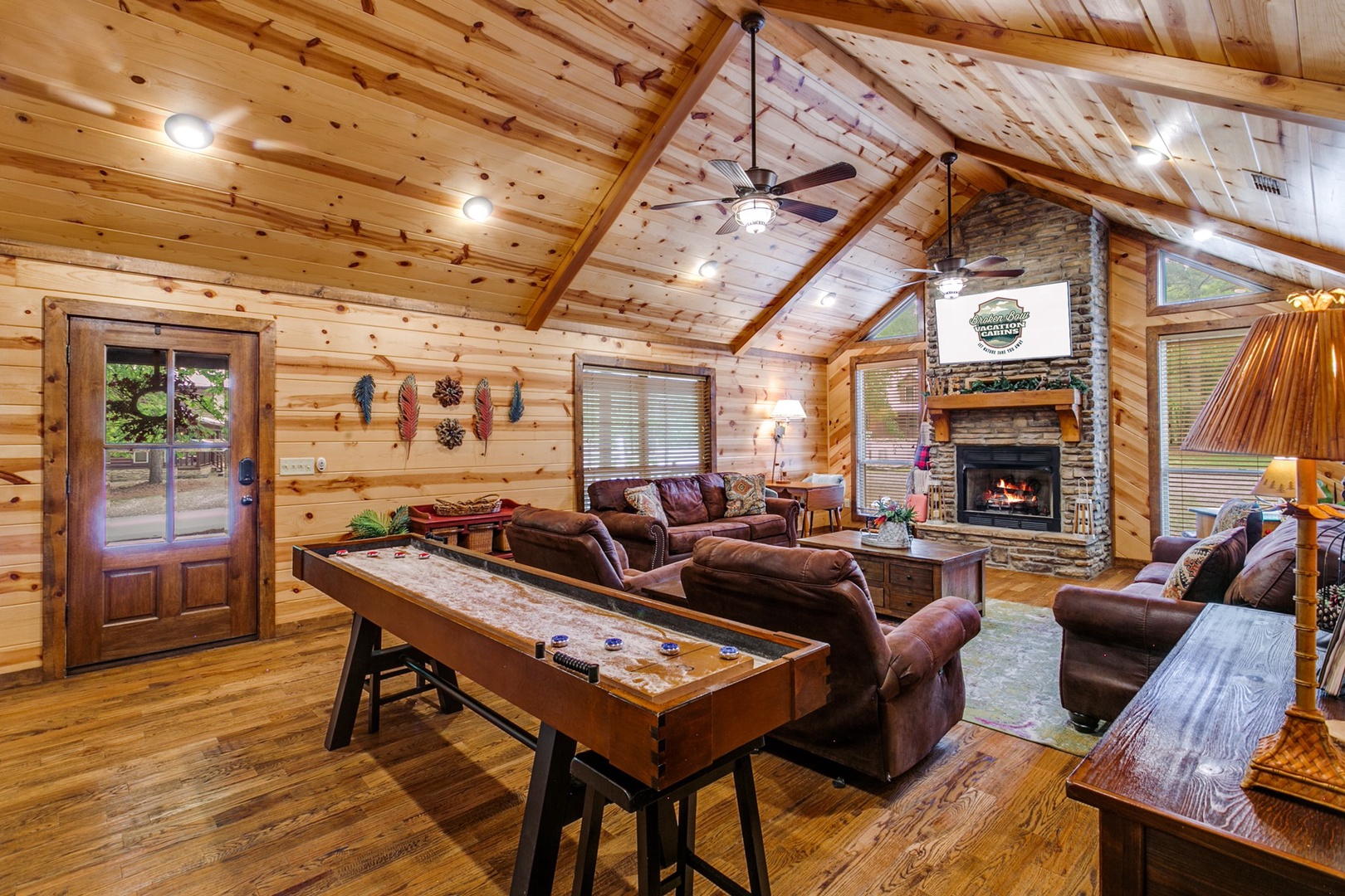 - Gas log fireplace with easy on/off switch in living area (seasonal October 15th – April 15th)