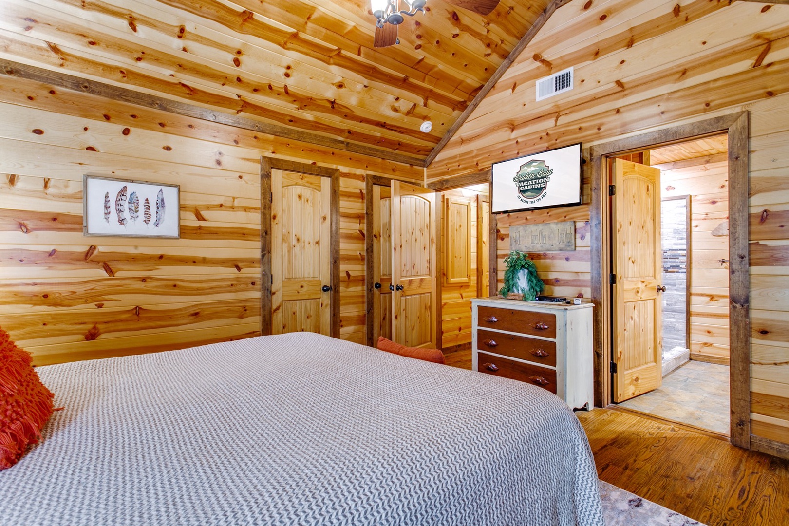 Windmill Escape is a luxury two bedroom, 2 1/2 bath cabin with couples or family stays their priority. It offers easy access off 259, close to all the favorite attractions and hot spots. It even has the fisherman in mind with a large turn around parking area for that nice boat.