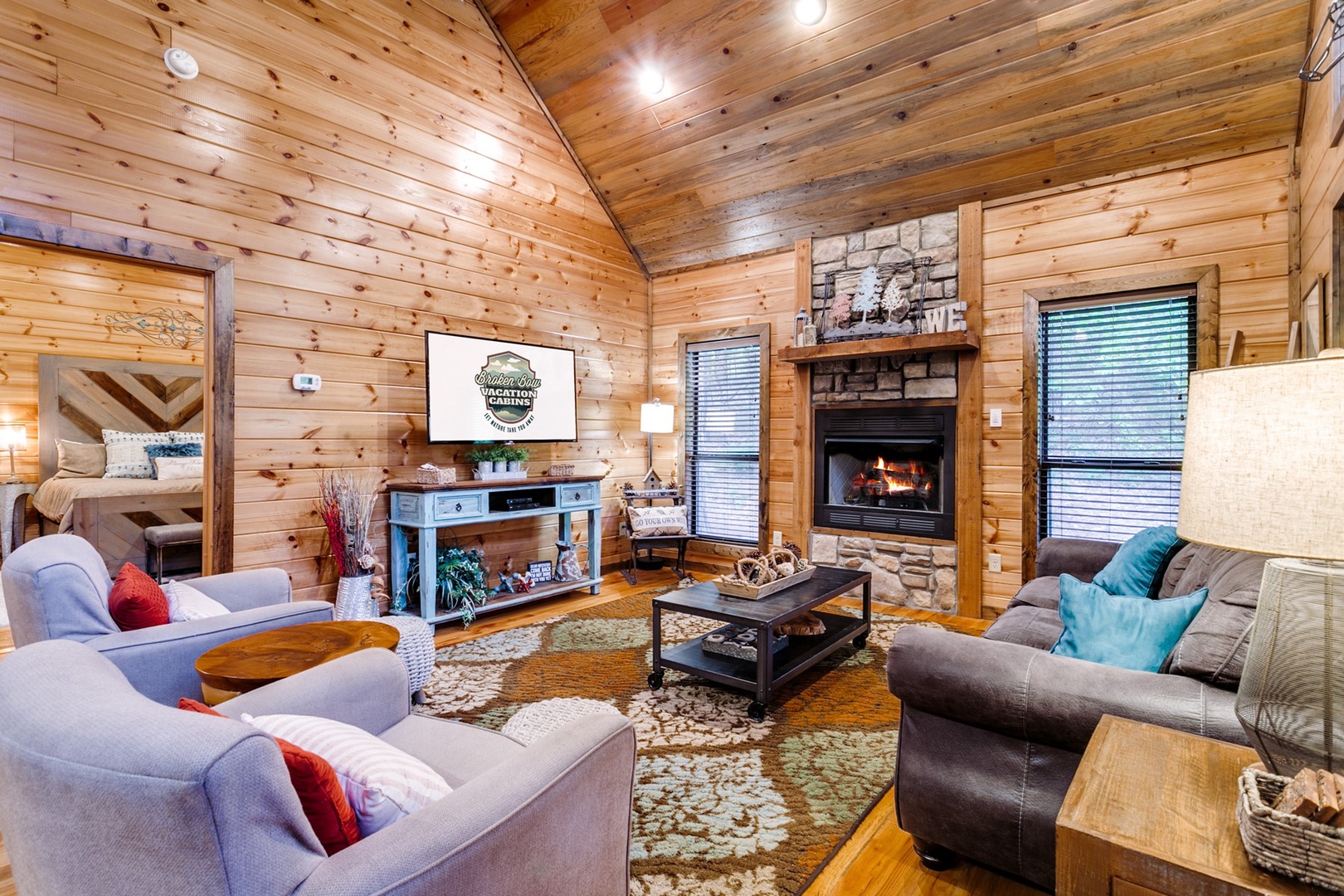- Living area has gas fireplace with easy turn on switch. (Seasonal October 15th – April 15th)