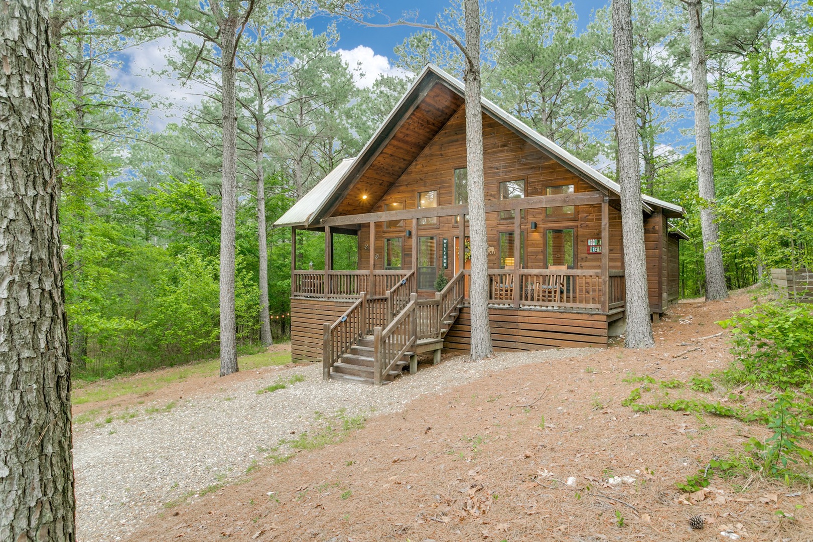 Woodland Escape is conveniently located within a short walking distance to the Yard Under The Pines. The Yard features dining, retail and entertainment options. Within a short drive you will find MULTIPLE dining and entertainment options, Broken Bow Lake, and Beavers Bend State Park, featuring beautiful hiking trails and scenery.
