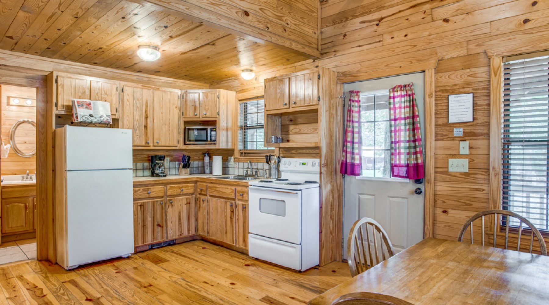 Breezy Ridge has an open downstairs living /kitchen area with a dining table seating for four. The kitchen has an electric range/oven, microwave and small appliances of toaster, crock pot, blender and hand-mixer. Automatic drip coffee maker with filters and coffee provided. Breezy Ridge does not have a dishwasher-enjoy sharing the experience of hand washing with the family as in years of past.