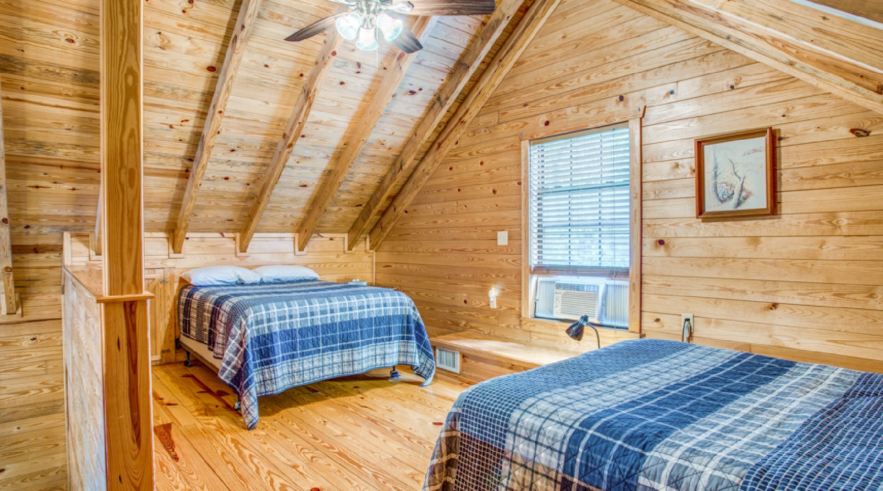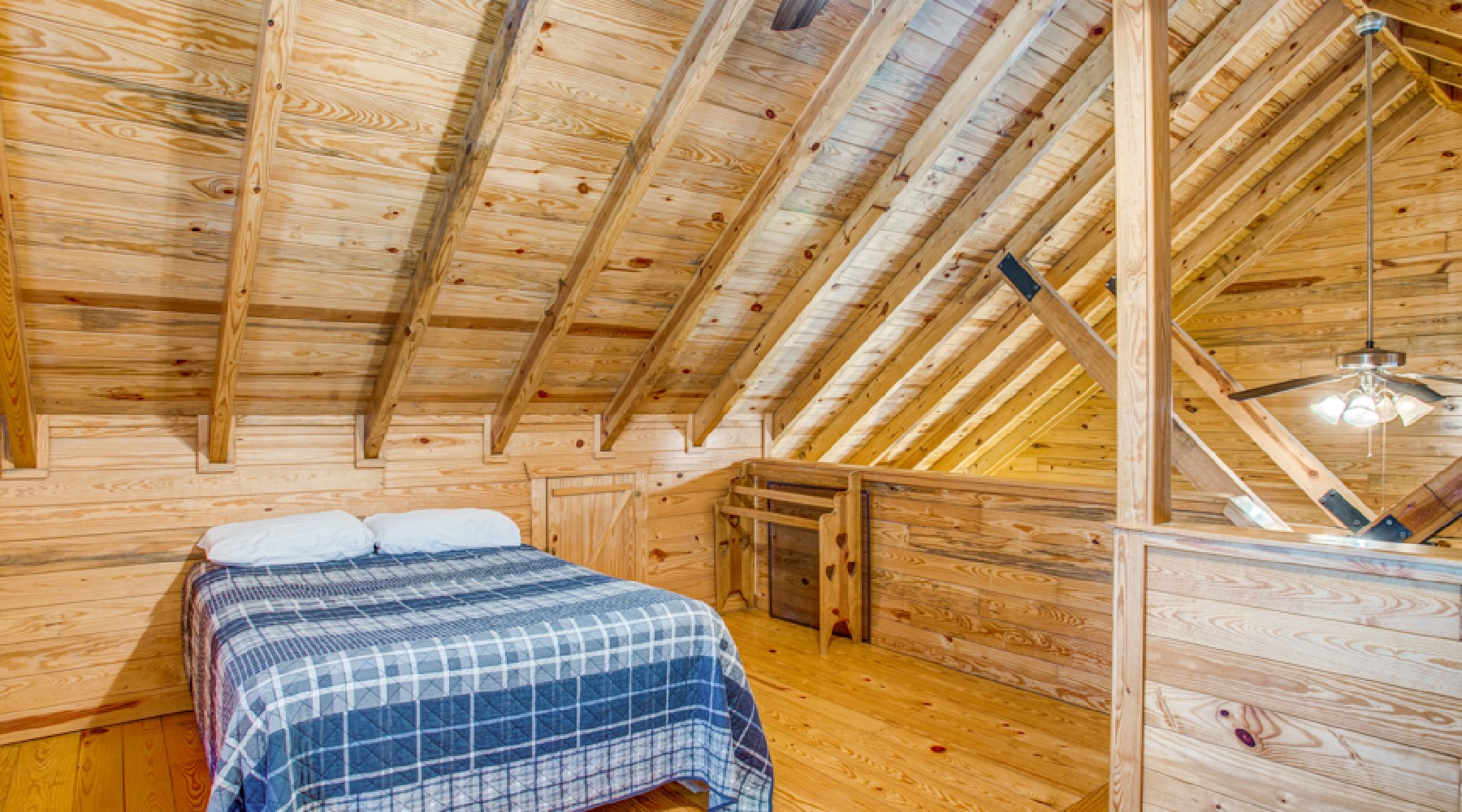 Breezy Ridge is the perfect place for a family looking for great value, or a group of fishermen needing a place to lay their heads. The downstairs room has a king-size bed and the upstairs loft has two full-size beds which makes a nice layout for giving the kids their very own space during your stay.