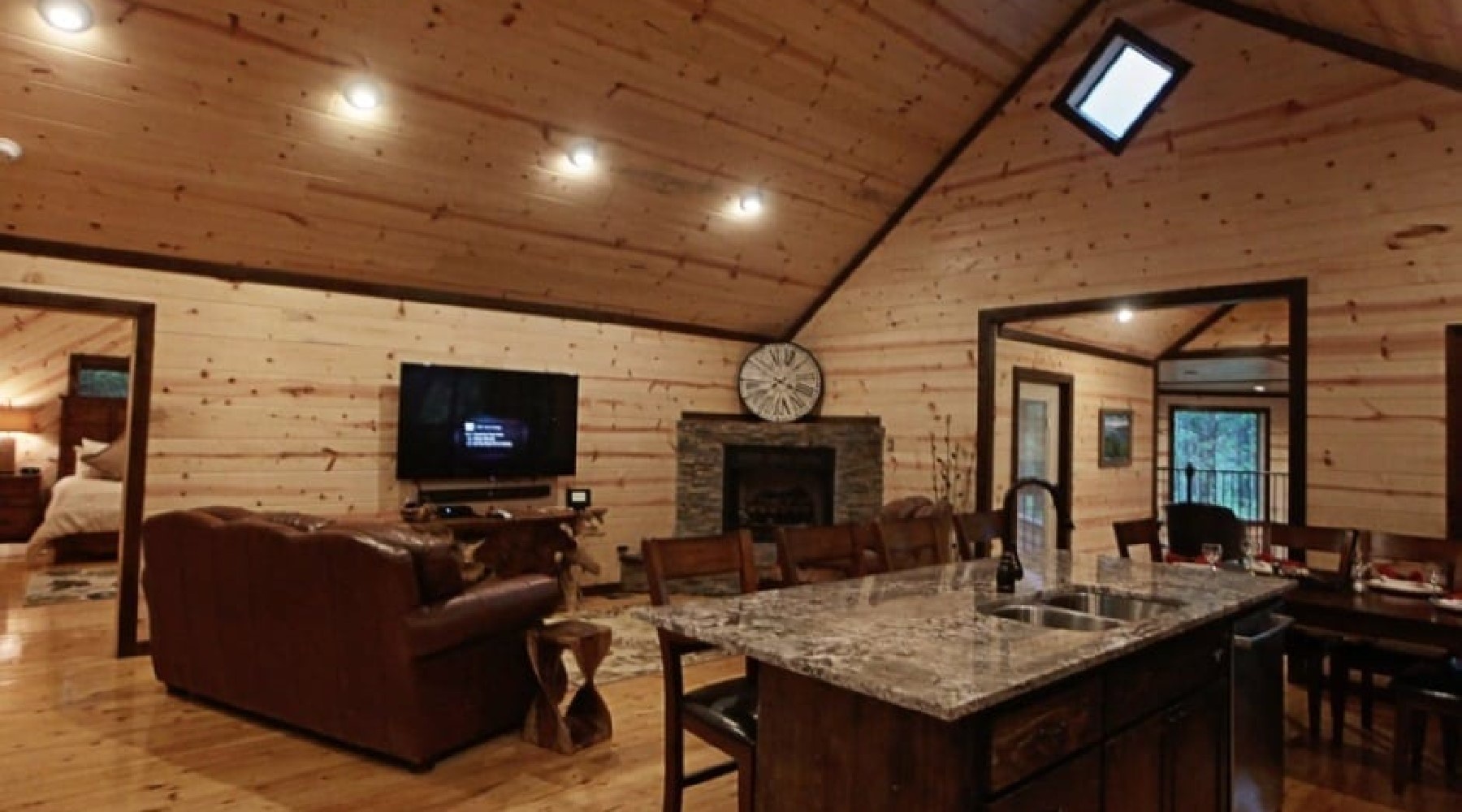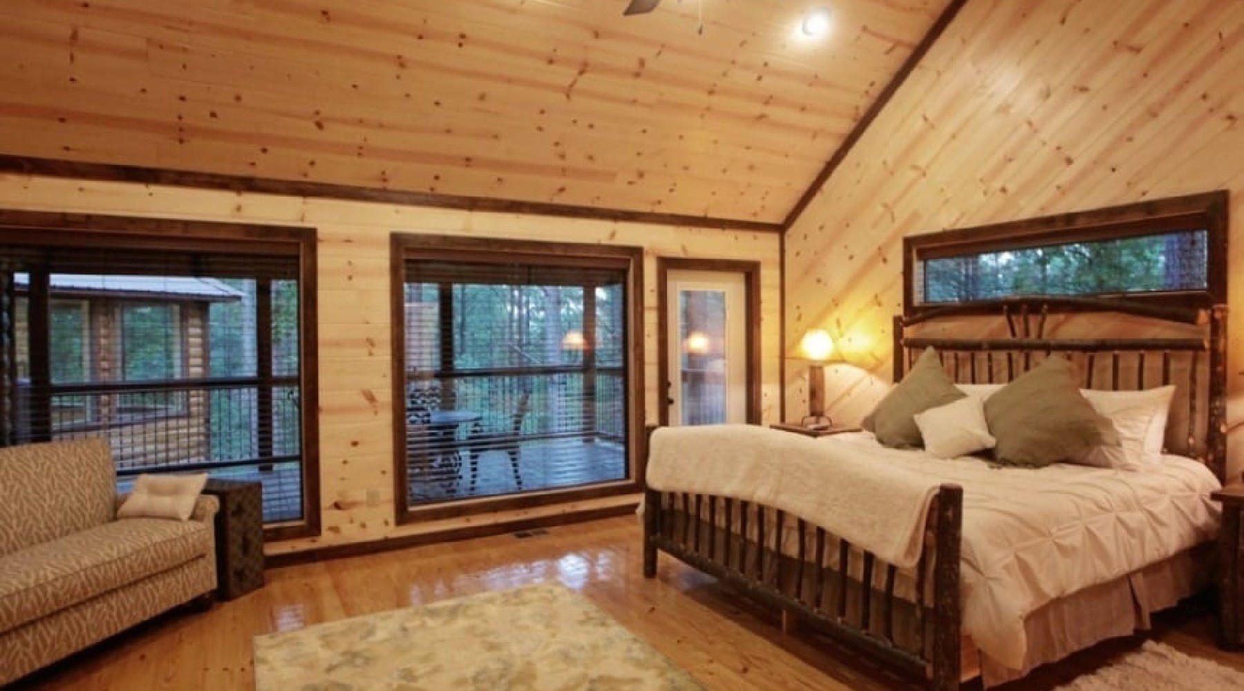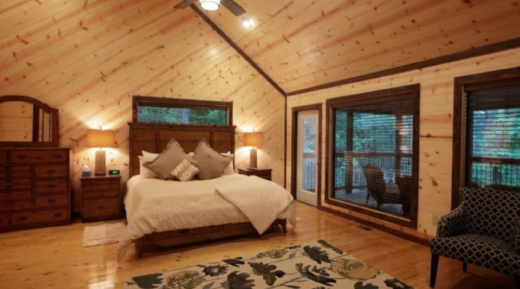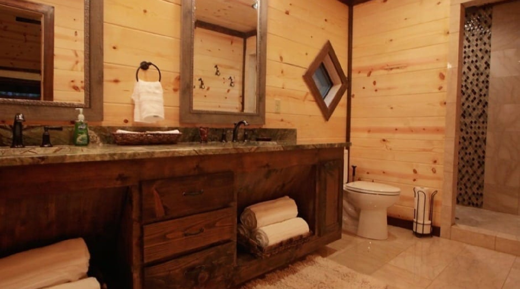 The cabin is perfectly suited for 2 couples with its two 400 square foot vaulted ceiling master suites. Relax in the large dual headed marble shower. Each bedroom has its own private access to one of two large covered decks which are perfect for enjoying a morning cup of coffee or an evening glass of wine.