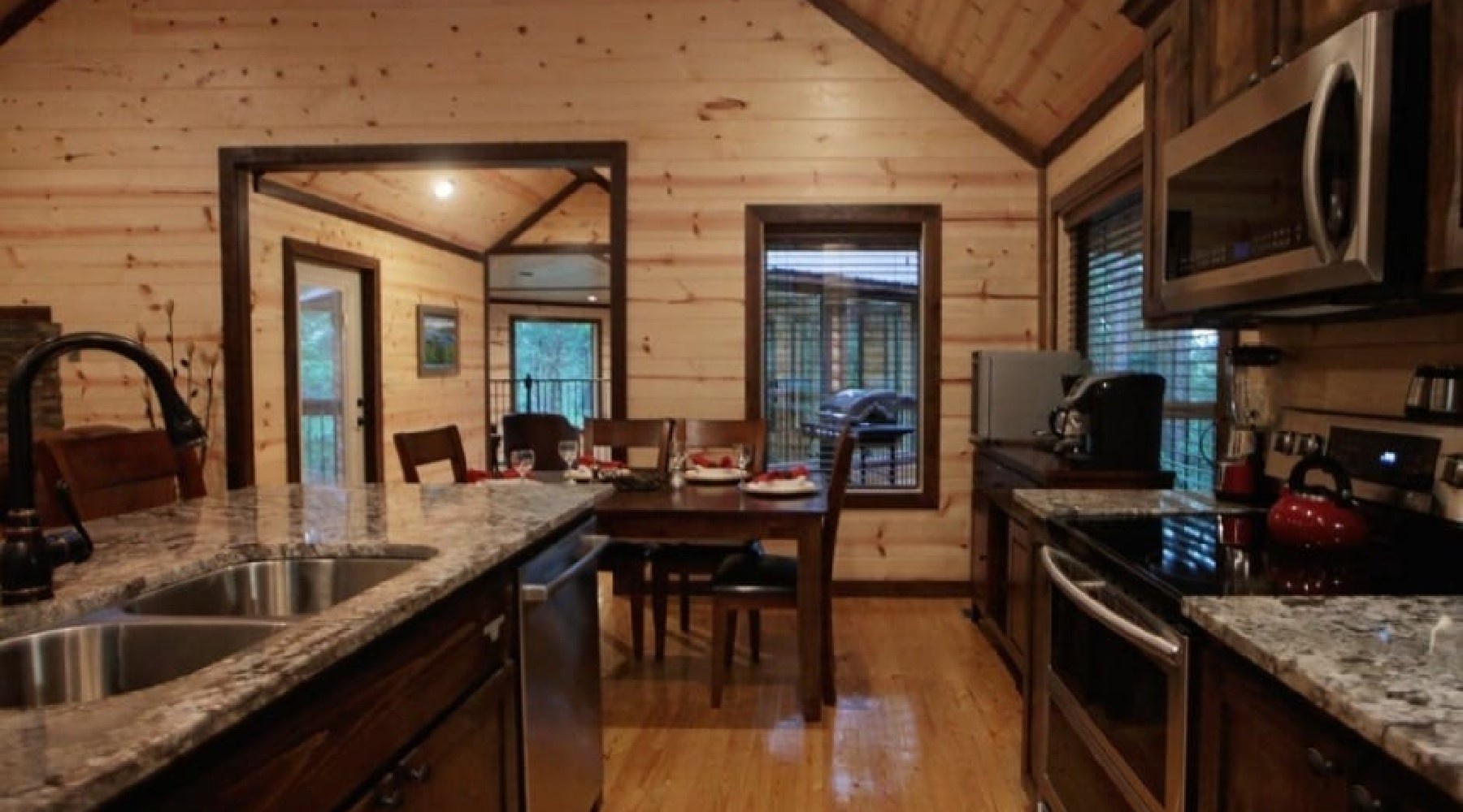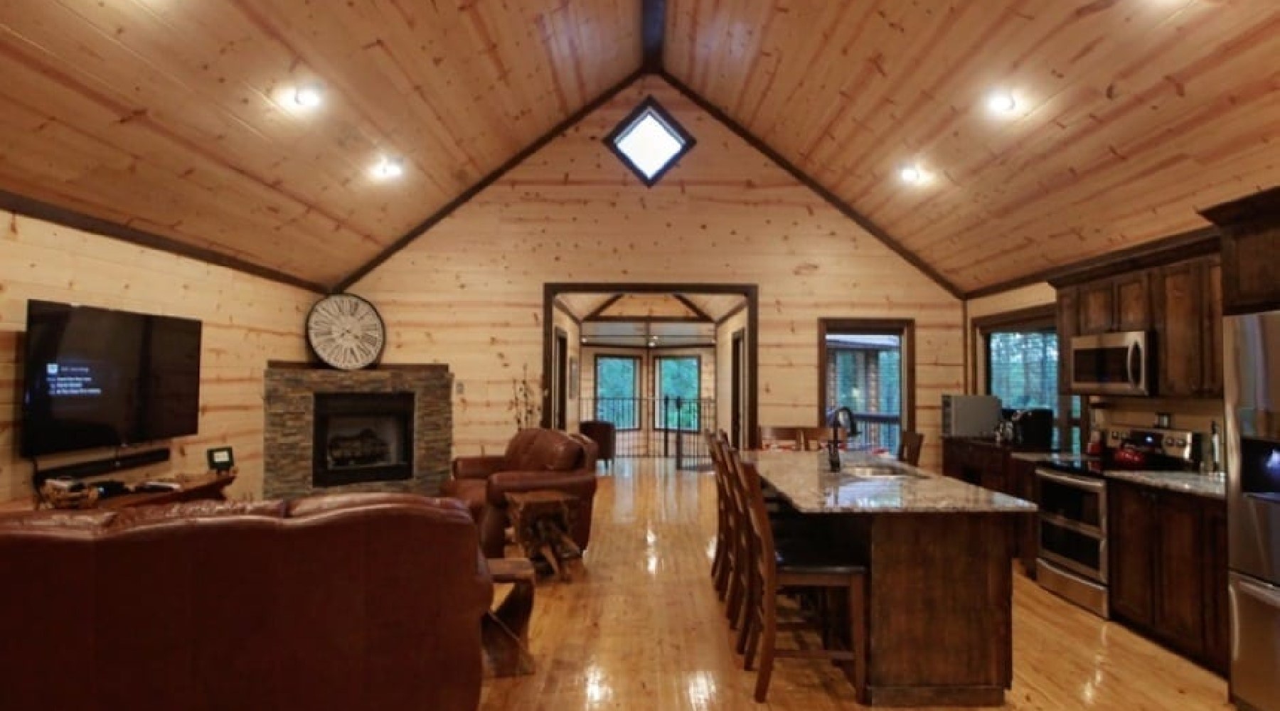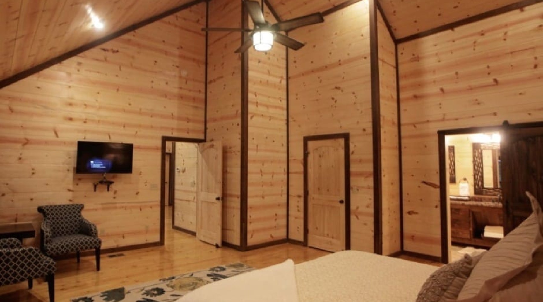 The cabin is perfectly suited for 2 couples with its two 400 square foot vaulted ceiling master suites. Relax in the large dual headed marble shower. Each bedroom has its own private access to one of two large covered decks which are perfect for enjoying a morning cup of coffee or an evening glass of wine.
