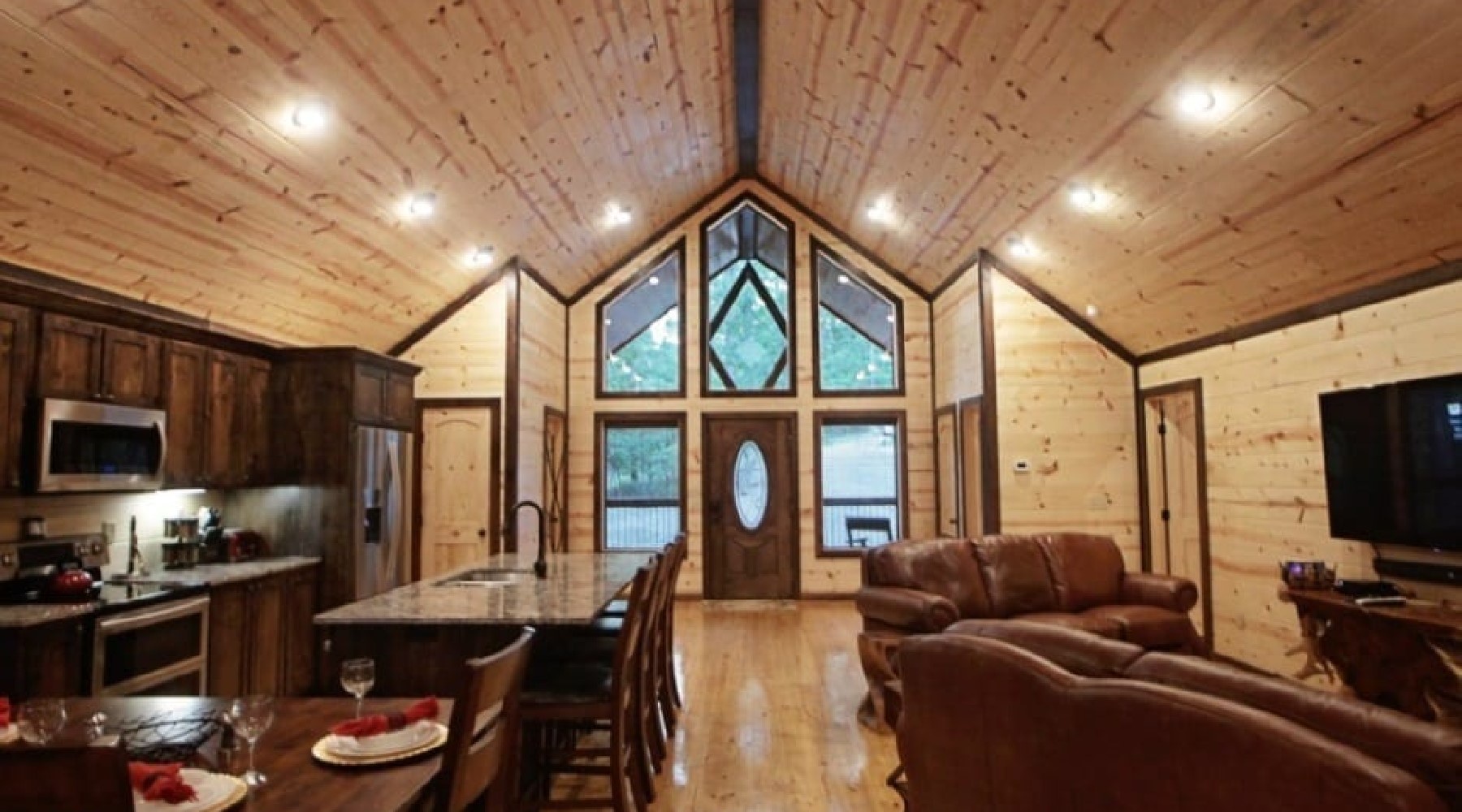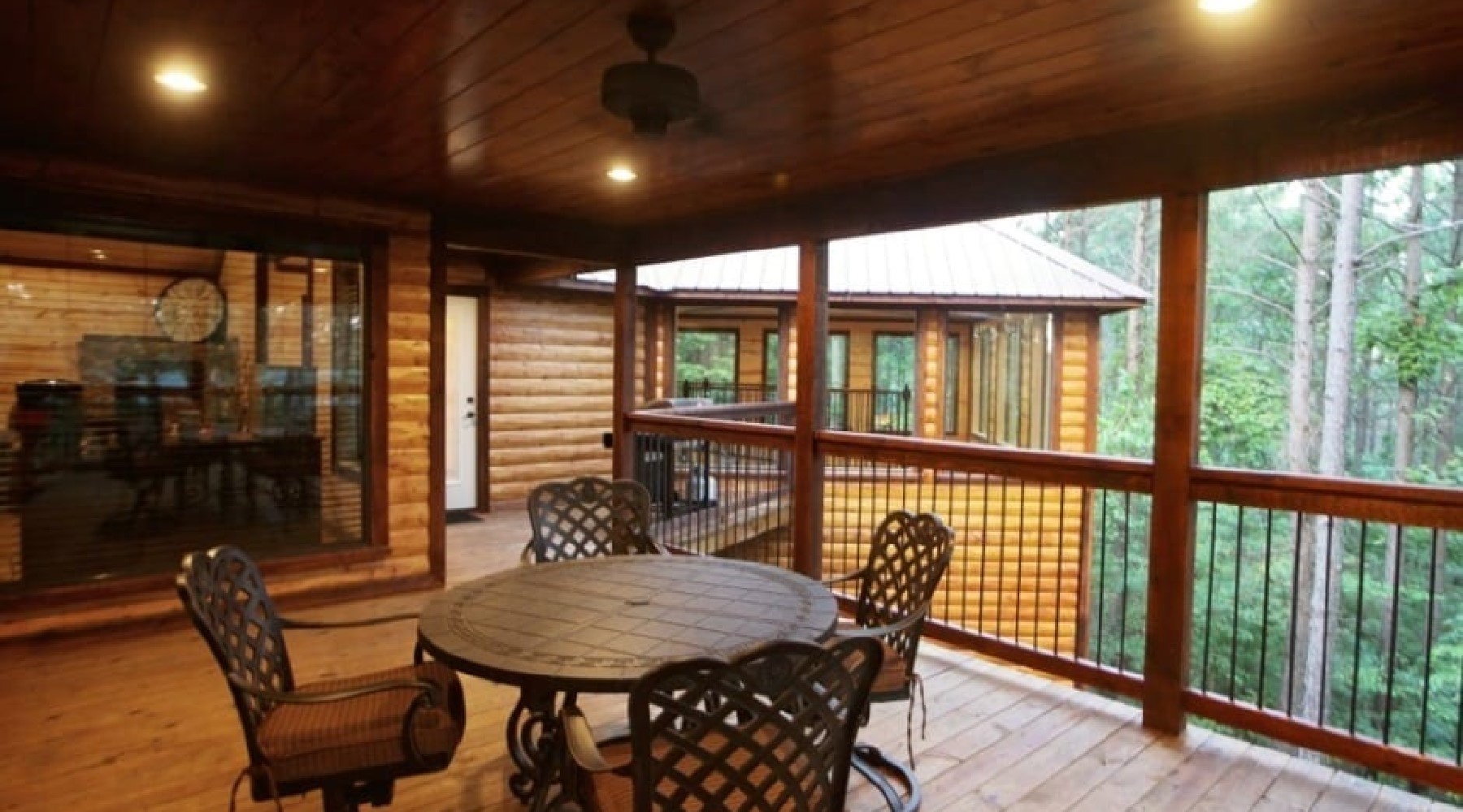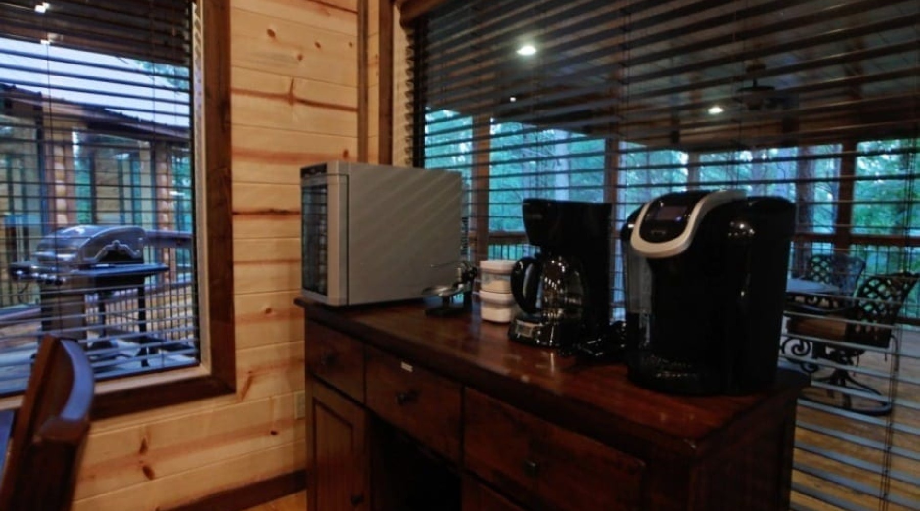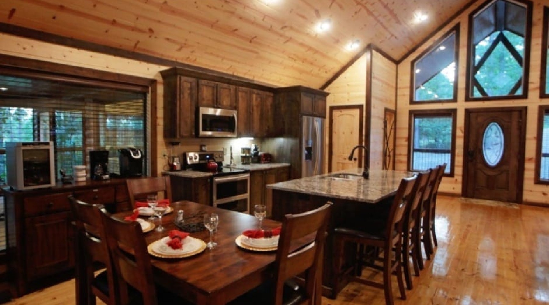 The cabin is perfectly suited for 2 couples with its two 400 square foot vaulted ceiling master suites. Relax in the large dual headed marble shower. Each bedroom has its own private access to one of two large covered decks which are perfect for enjoying a morning cup of coffee or an evening glass of wine.