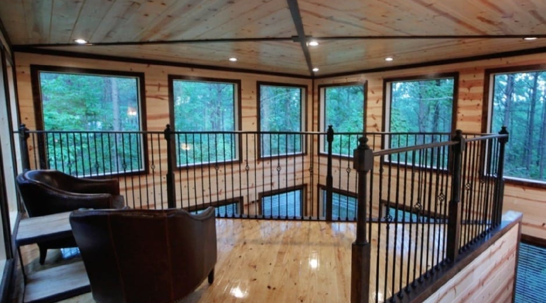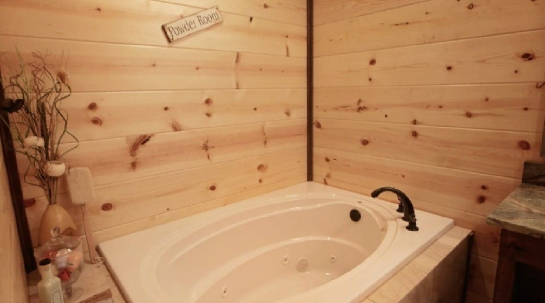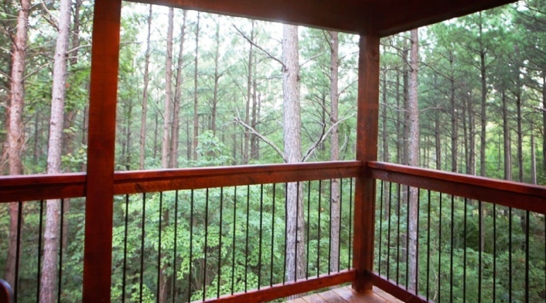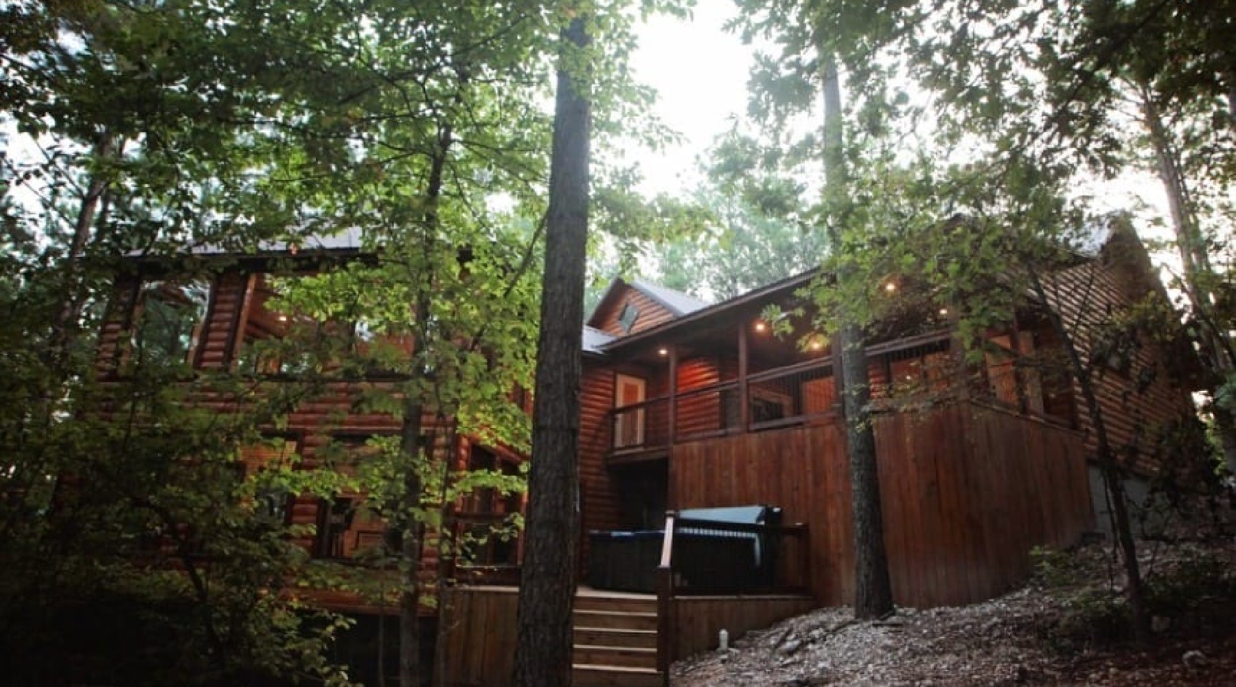 Diamond Point is a 2-bedroom master suite luxury cabin, completed in August 2016. The rustic exterior of the cabin blends nicely with the wooded surroundings. Once you open the door and step in you will be awestruck. The cabin is furnished with luxury and no detail has been overlooked in order to provide a relaxing, pampered getaway. You will be immediately drawn through the vaulted living space to the loft, where you will look down into a 2 story “diamond solarium” game room. The 21 large window solarium provides a 270-degree view of trees and occasional wildlife, placing you in the thick of the woods, while at the same time enjoying the comforts of the indoors. As you follow the steps downstairs you enter the game room where you can play a game of pool or be pampered head to foot in the full body massage chair. From the game room step out onto the spa deck and indulge in the large 6-person hot tub.