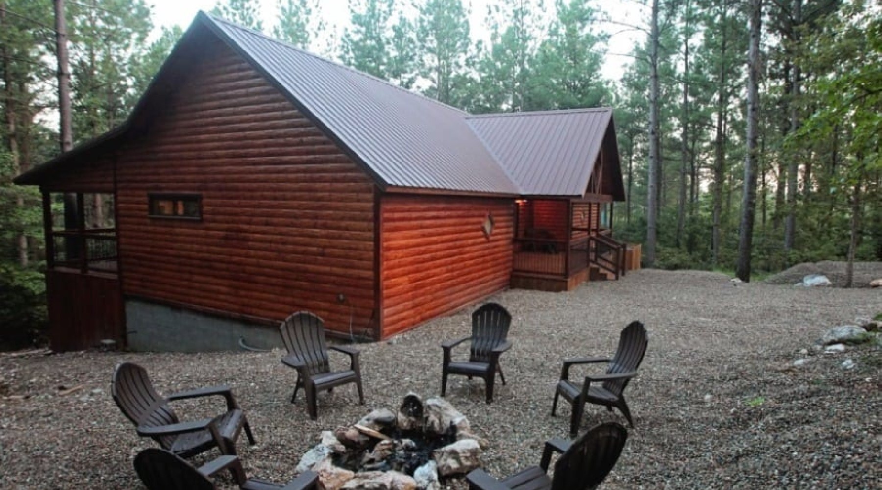 The cabin will easily accommodate 6 with the downstairs game room sleeper sofa.