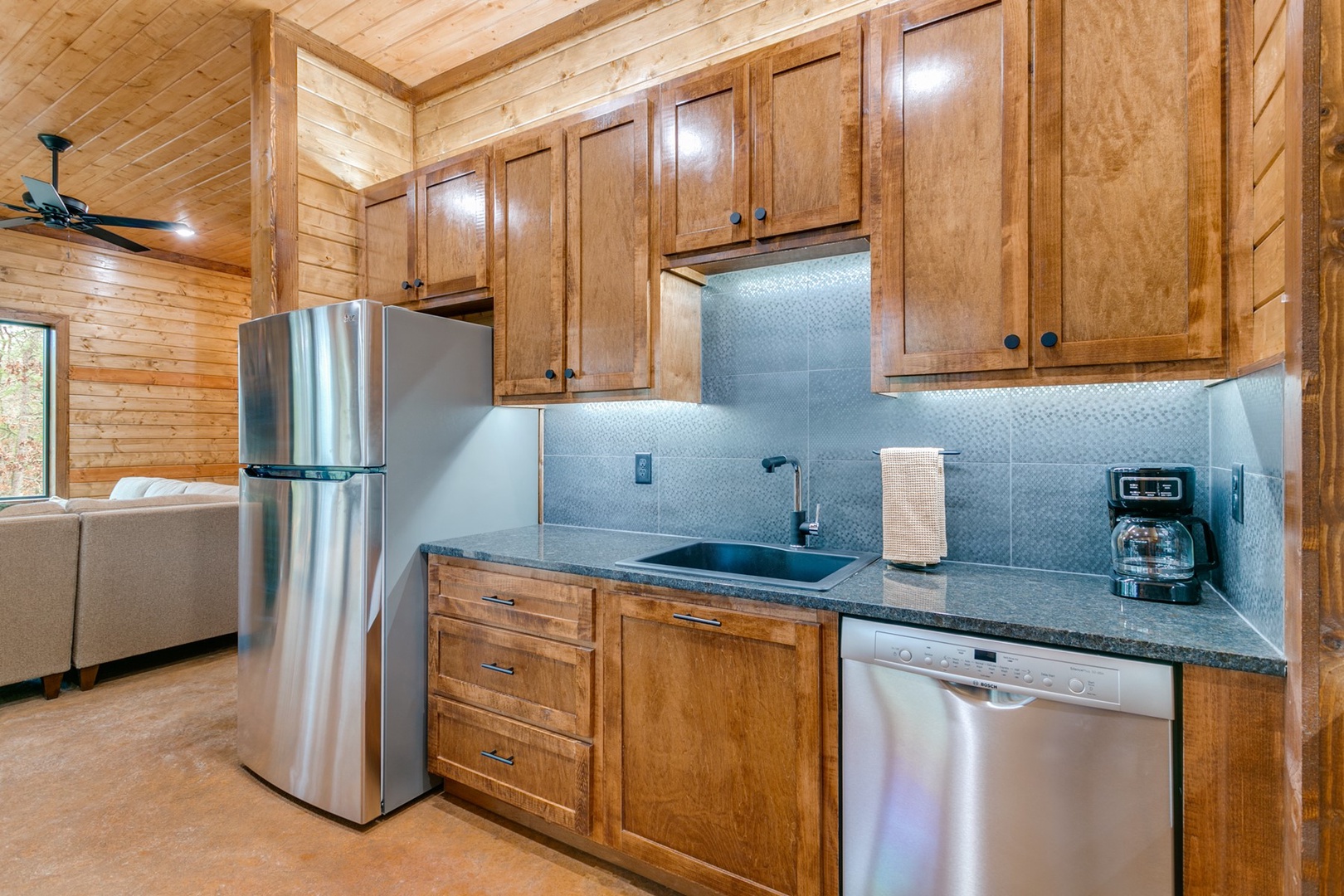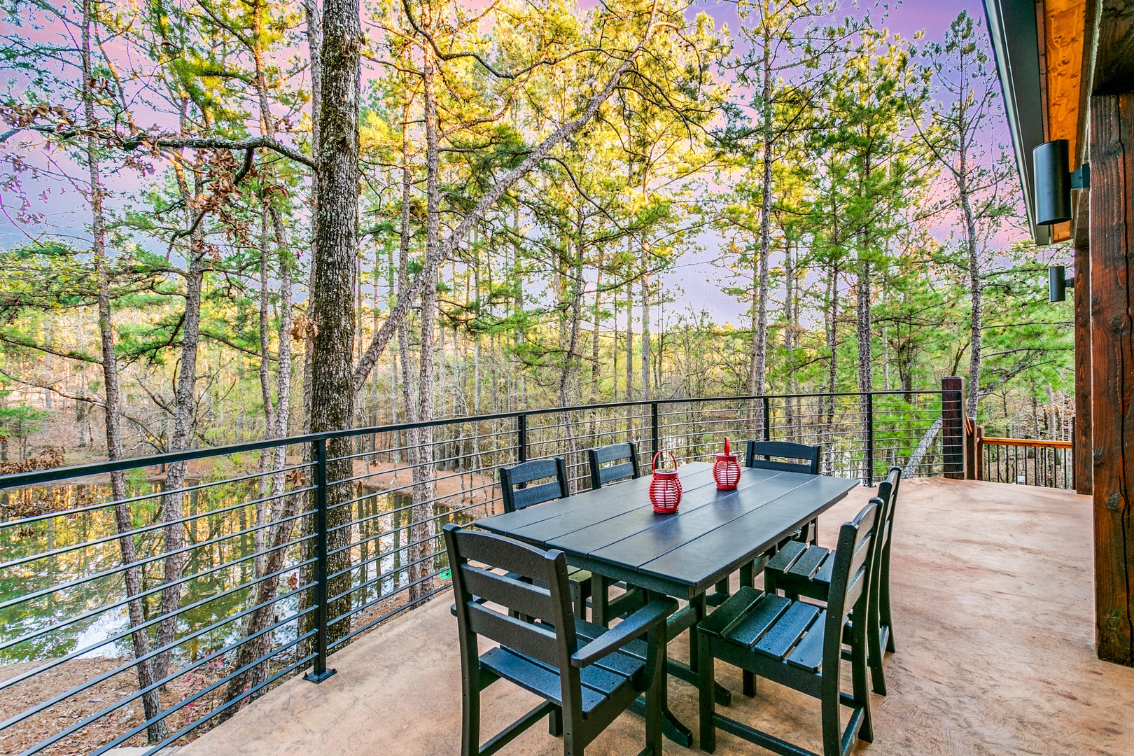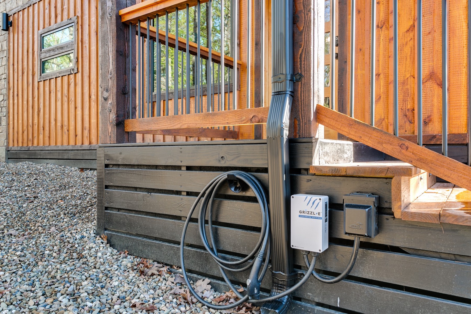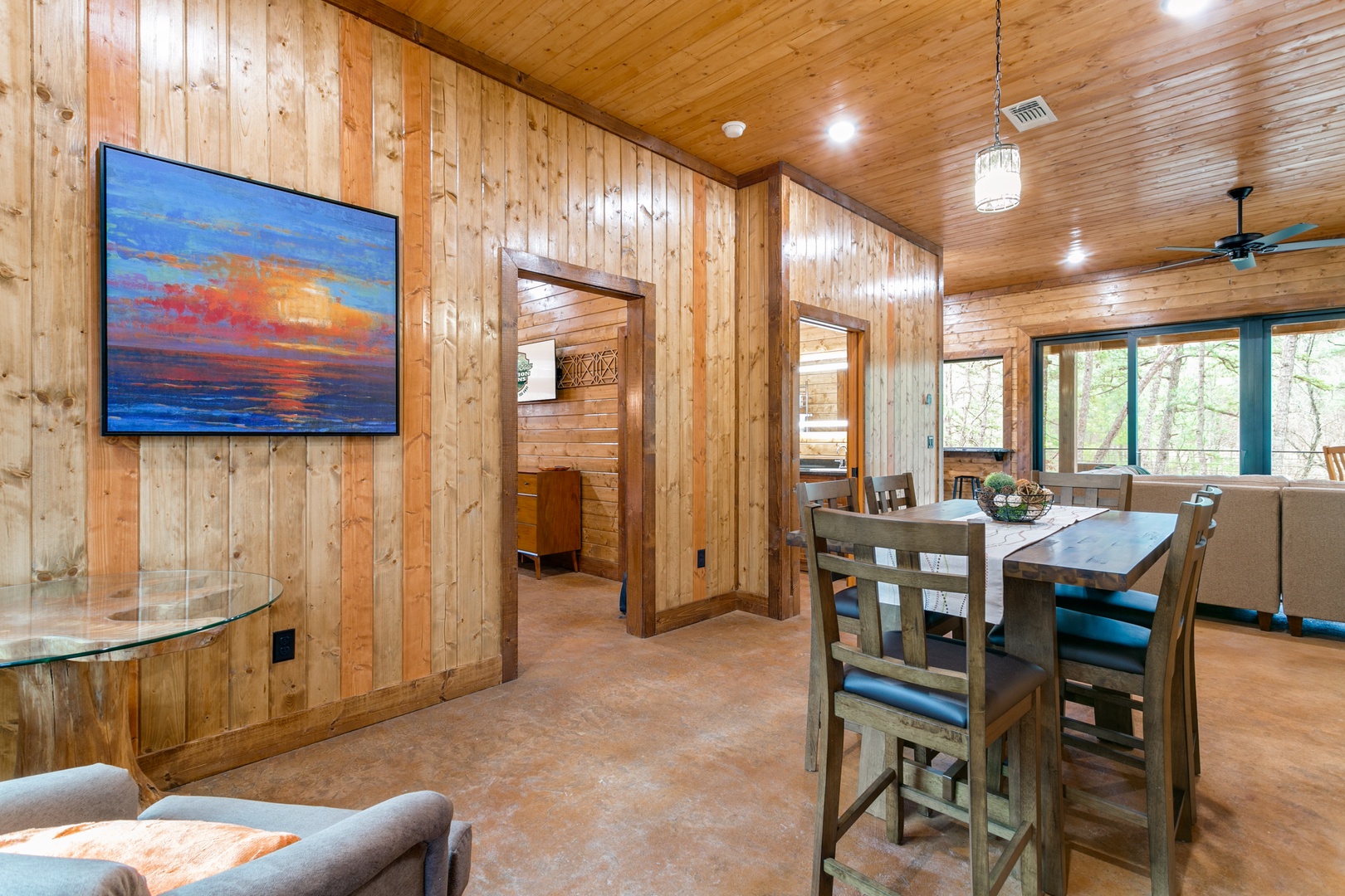 Reflections is a two-story, two-bedroom, ADULTS ONLY, (all guests must be 18+) and dander-free (no animals) cabin that sits on the bank of a private pond giving an atmosphere of serenity and relaxation. For guests with EV's, the cabin offers a level 2 car charging station. As you enjoy your time in the woods, take in the many custom touches of this remarkable cabin.