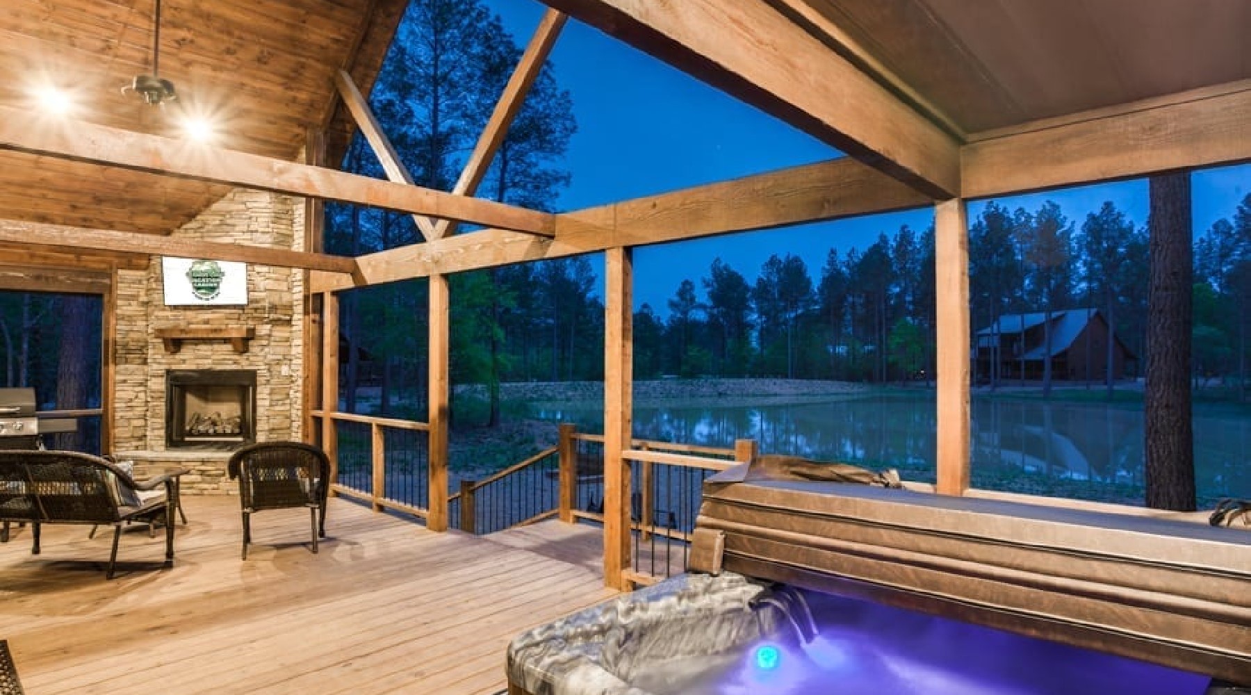 - 43″HDTV over fireplace on back deck