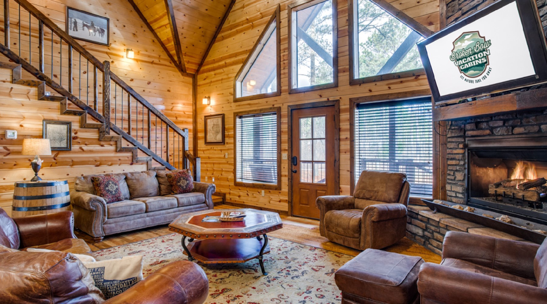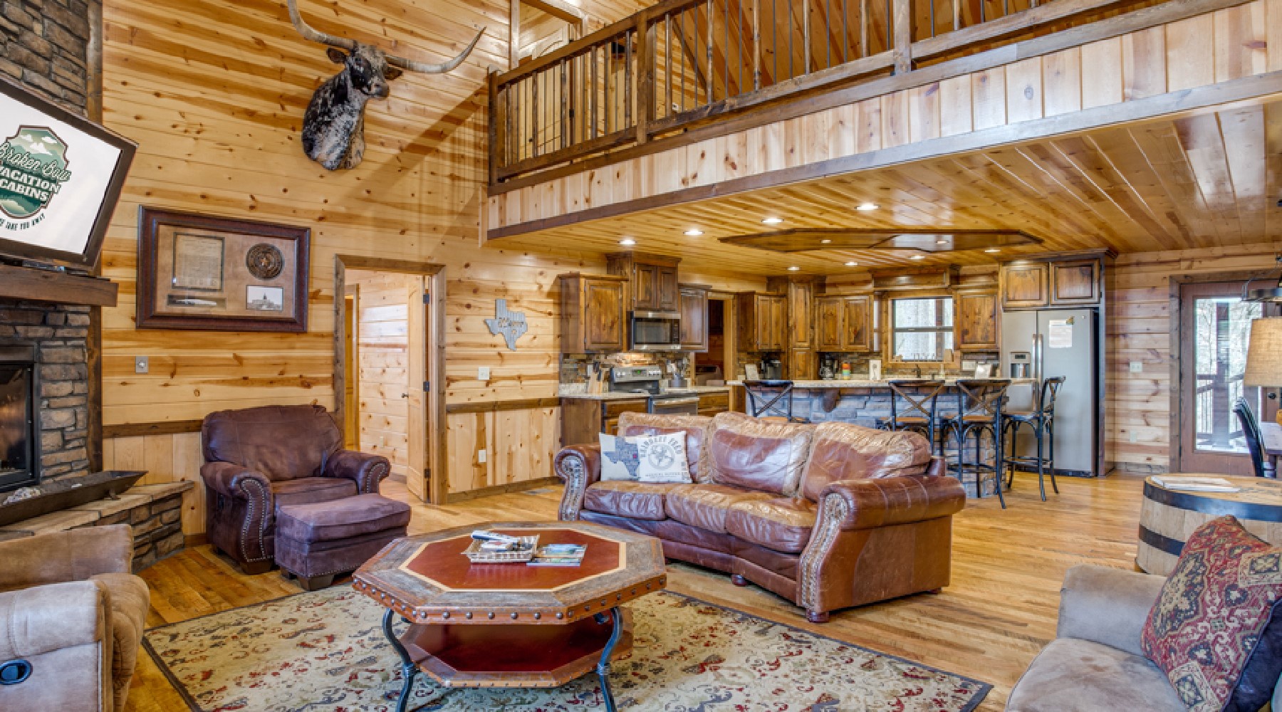 Enjoy the beauty of the Oklahoma pines in a lodge that salutes the land below its border, Texas! A tribute to the Lone Star state, Texas Belle proves that bigger is better.