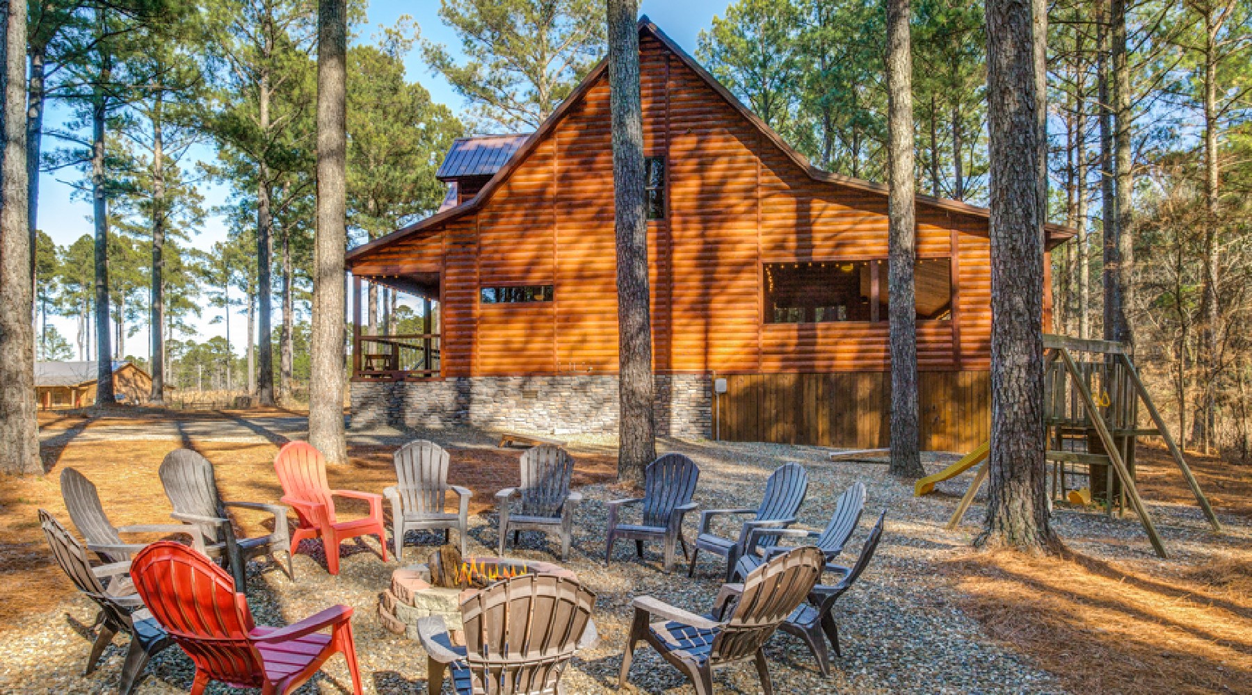 Off the back porch, there is a playground for the kids and a hammock for relaxing. And what cabin stay isn’t complete without roasting marshmallows around an open campfire? Texas Belle has just the place, with plenty of seating.