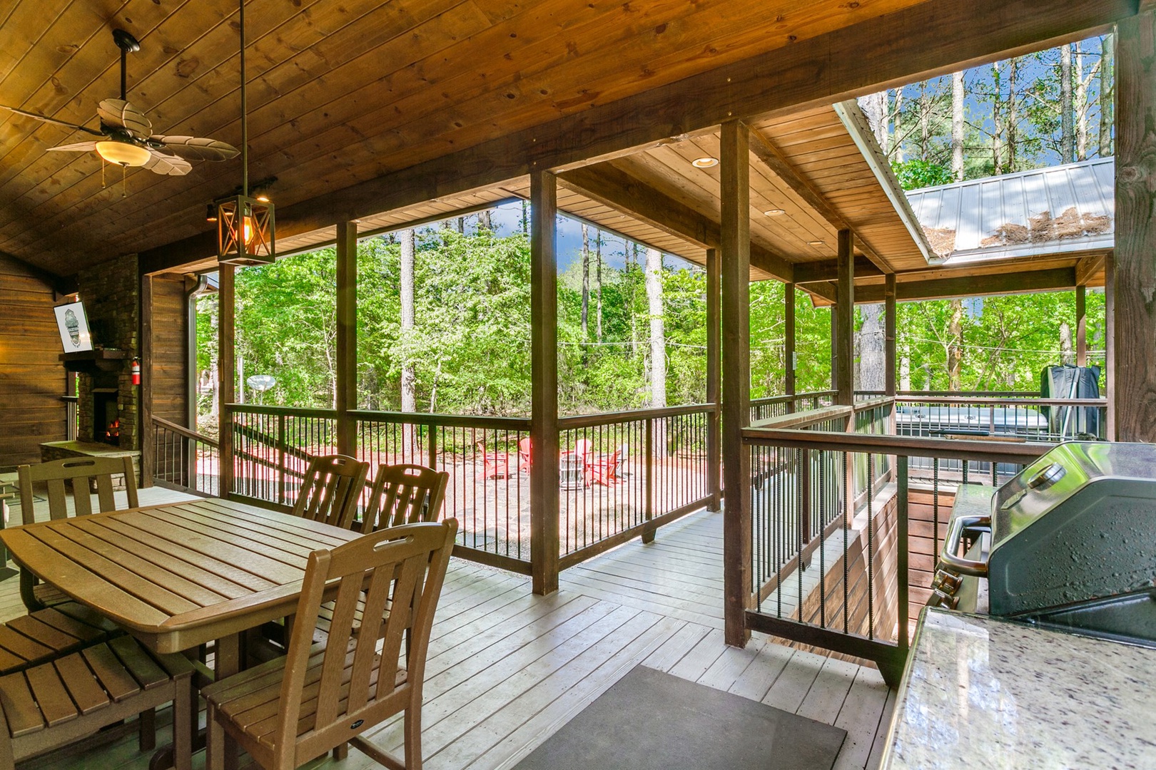 - The back deck has a gas log fireplace with timer switch (seasonal October 15th – April 15th)