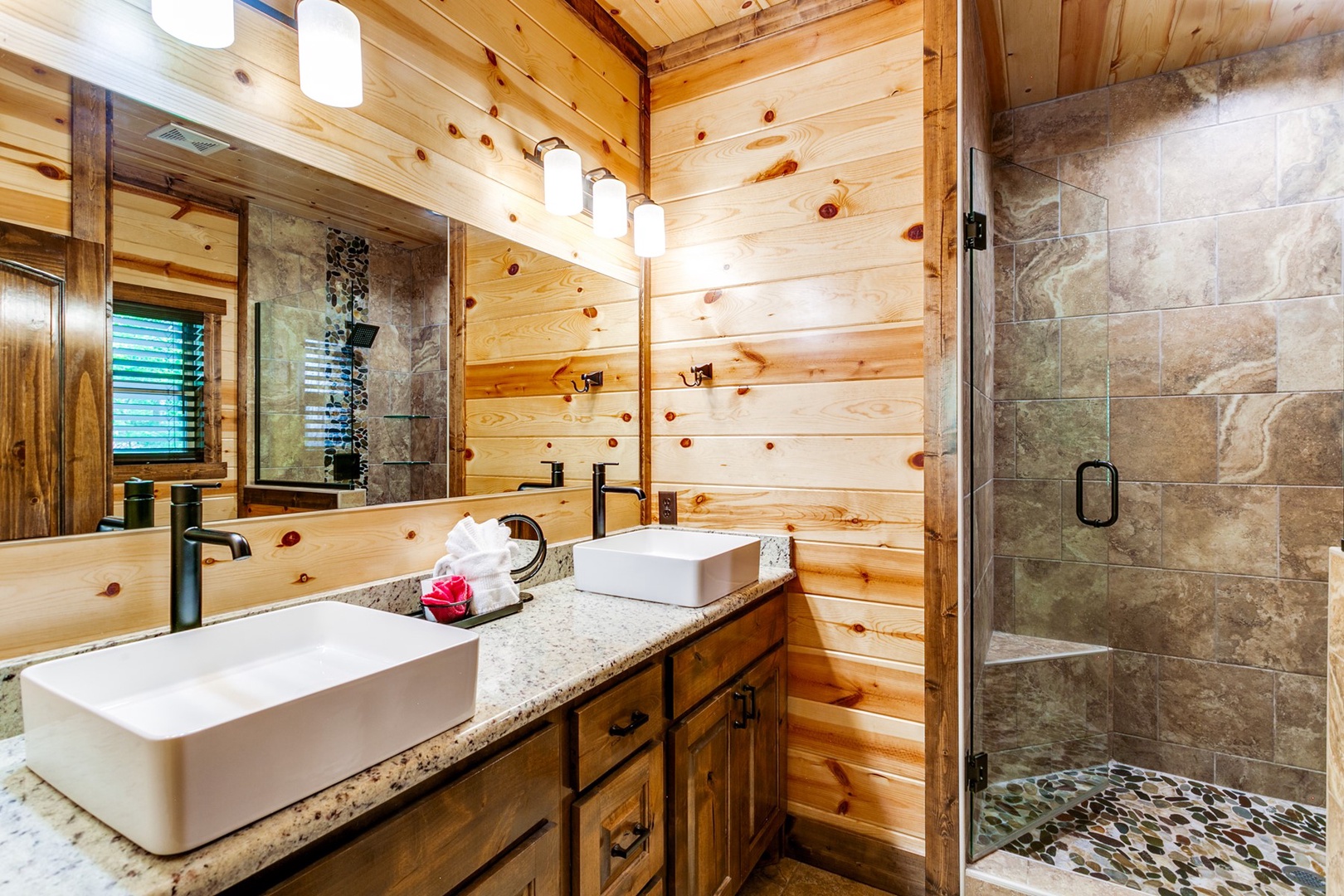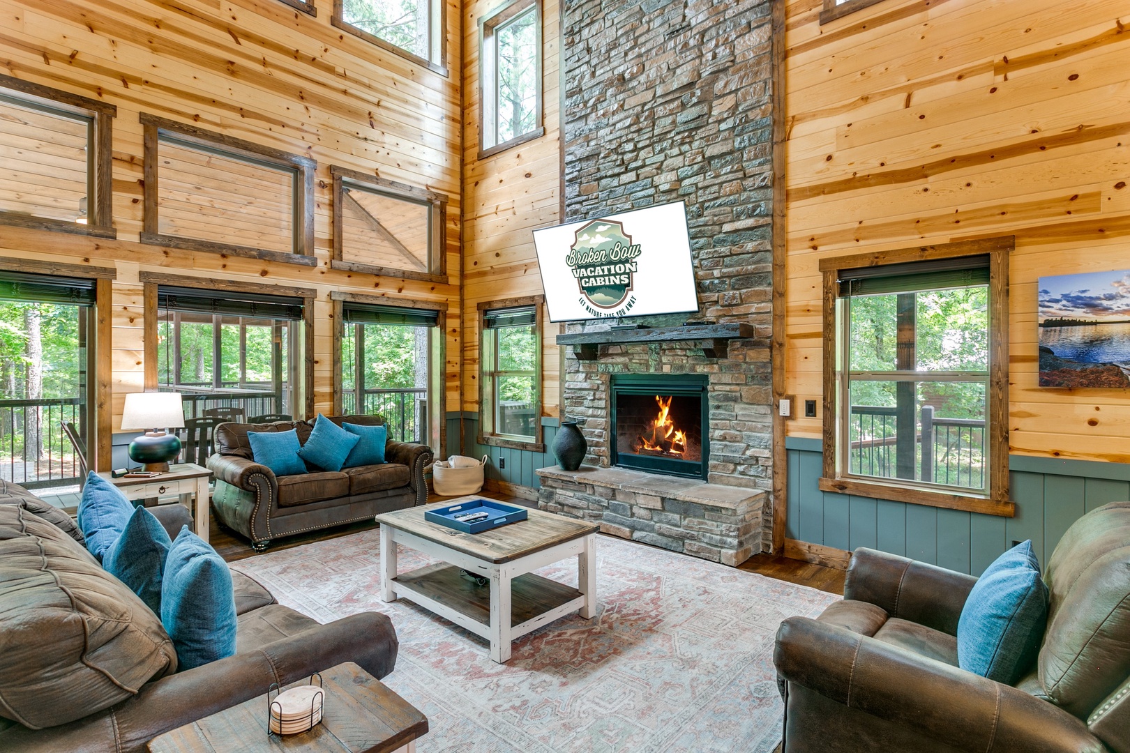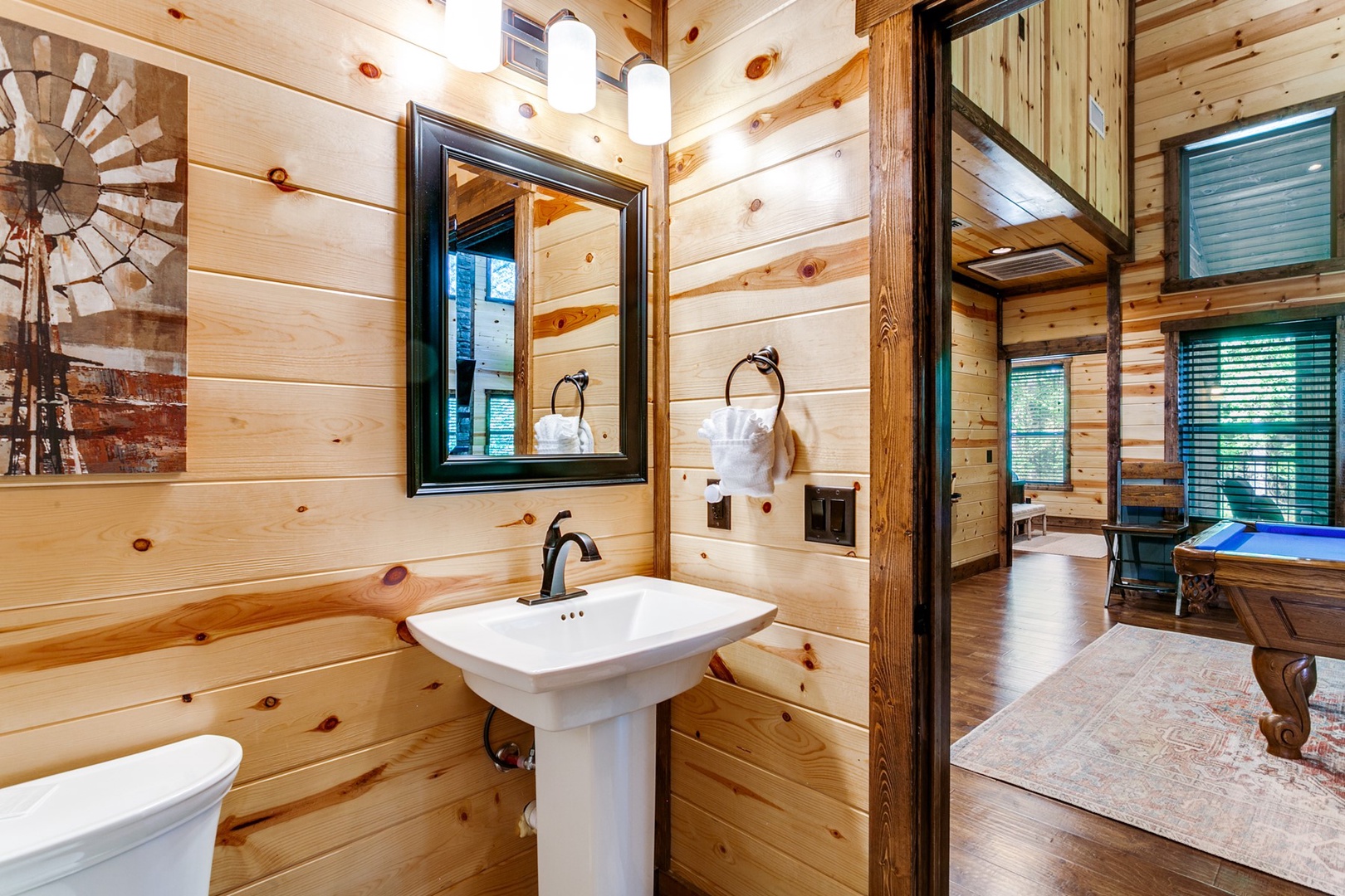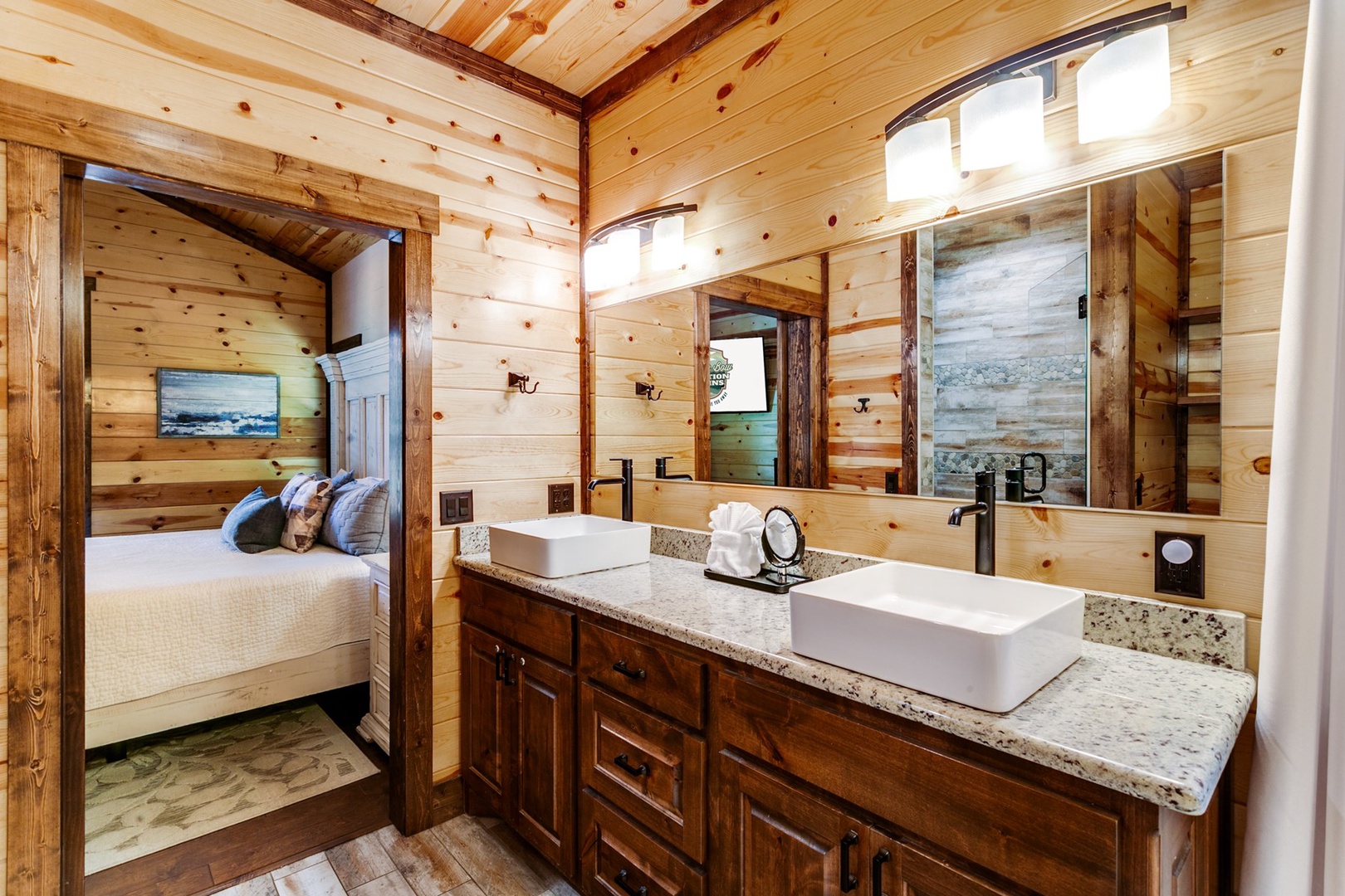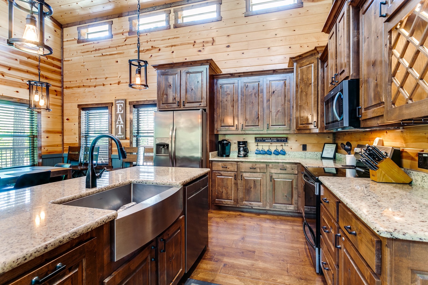 The Good Life is a single story cabin in the Lost Creek development, a paved and centrally located area of Hochatown.